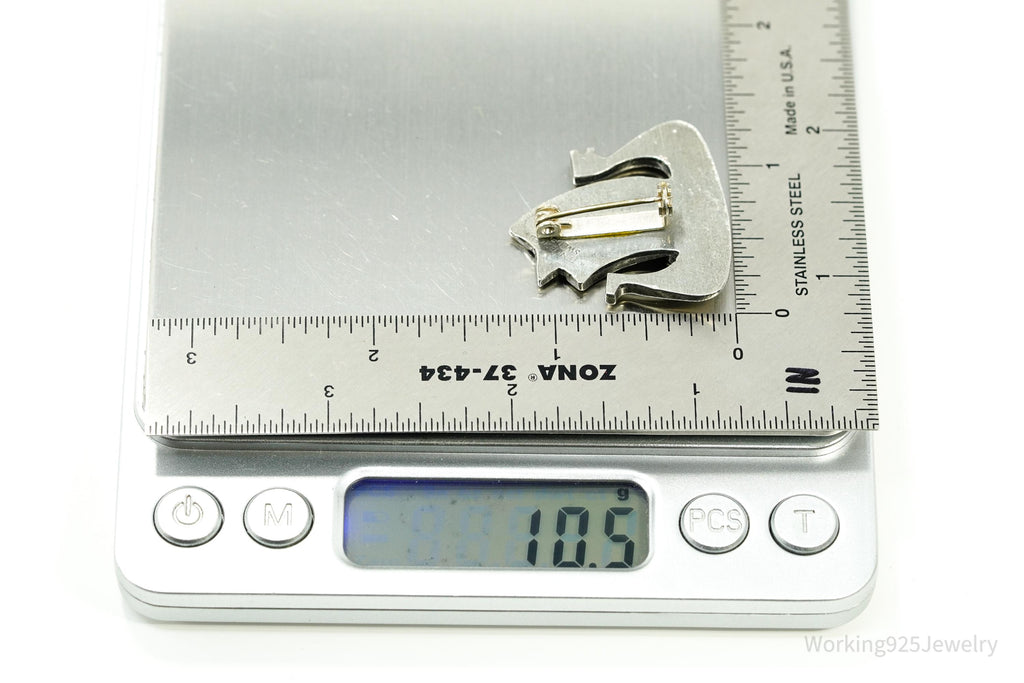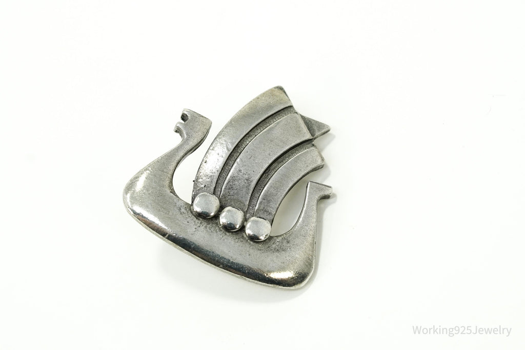Vintage Swedish Modernist R. Tennesmed Pewter Viking Ship Brooch Pin 1 1/8"
