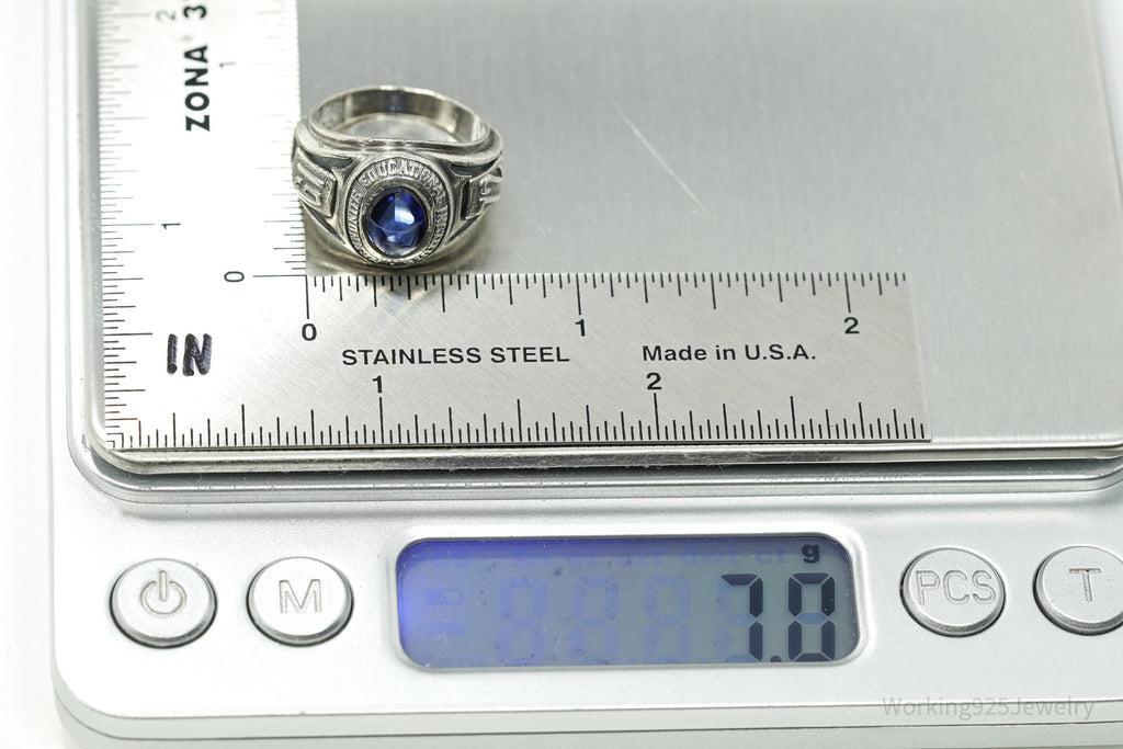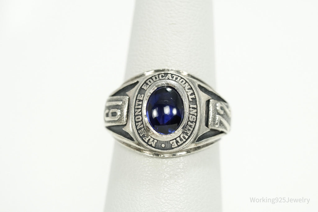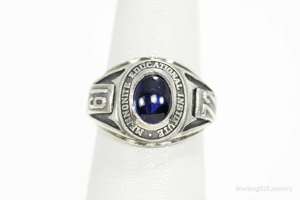 Vintage 1972 Mennonite Educational Institute Blue Sapphire Sterling Silver Ring -Size 5