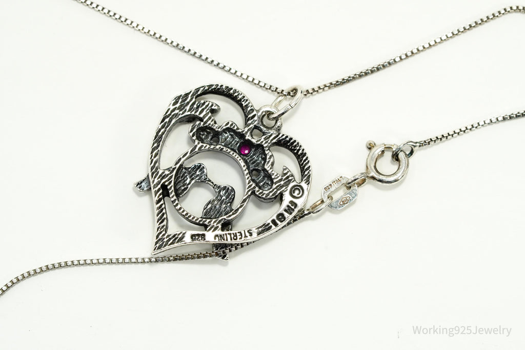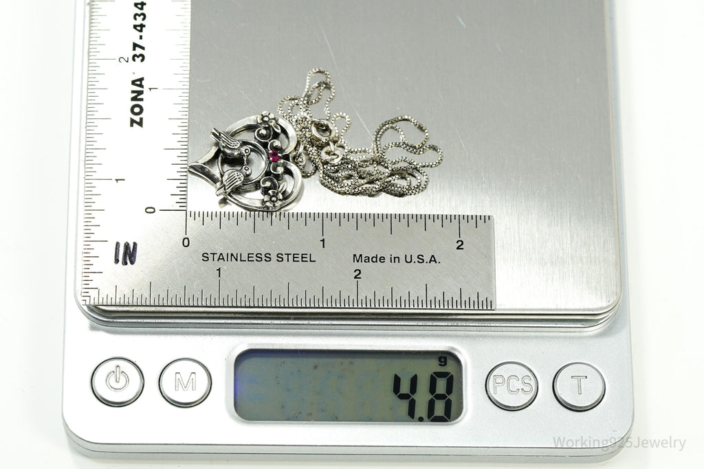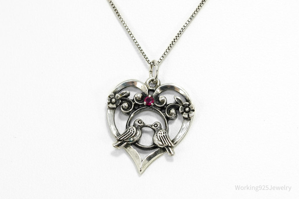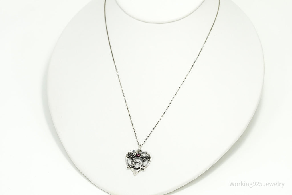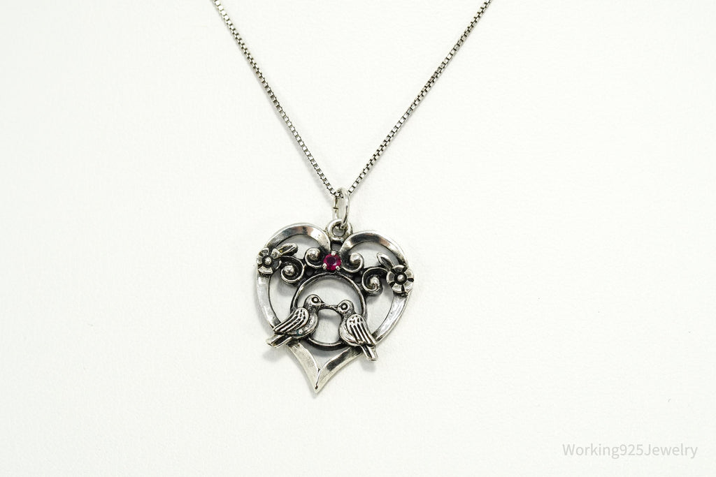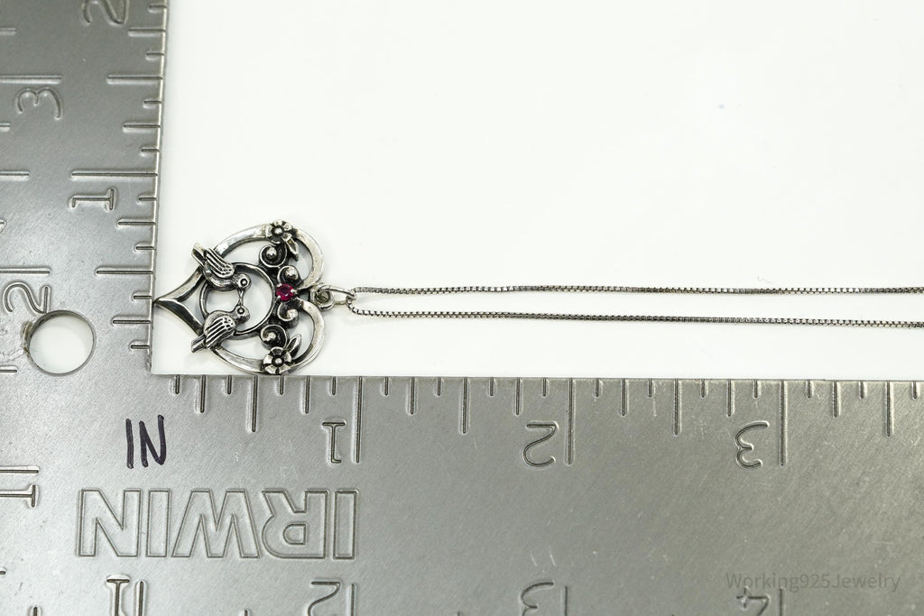 Vintage 1981 Franklin Mint Ruby Love Birds Sterling Silver Necklace 18"