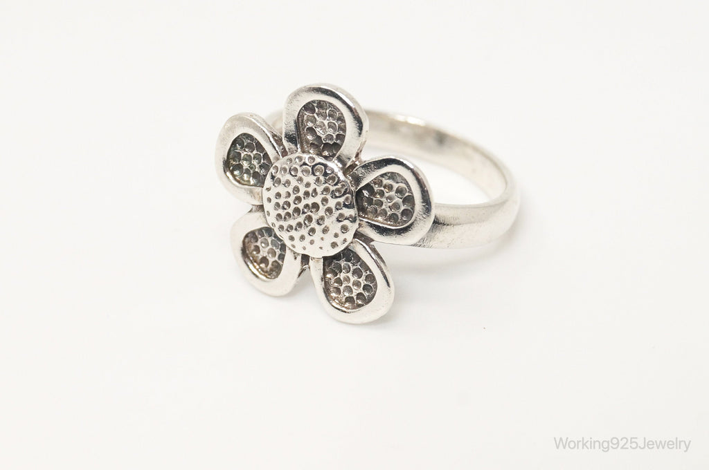 Vintage 3D Flower Sterling Silver Ring - Size 8.5