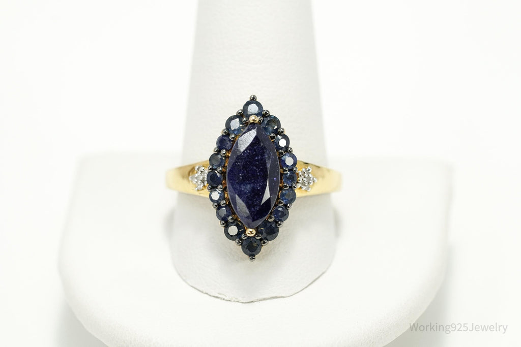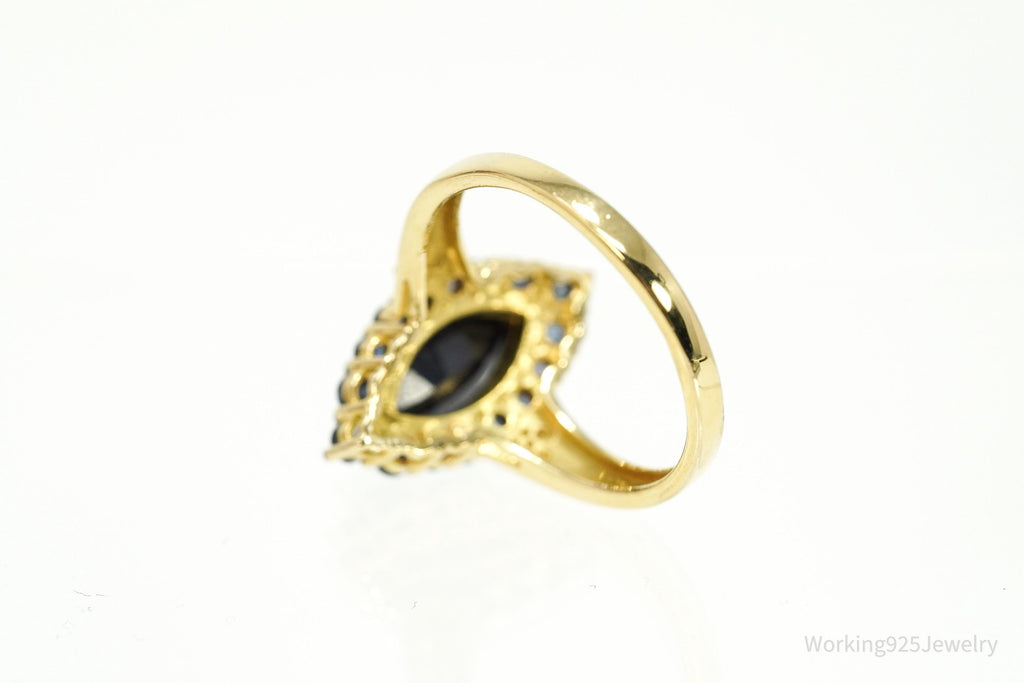 Vintage 70s Sapphire & Diamond Marquise Gold Over Sterling Cocktail Ring Sz 12