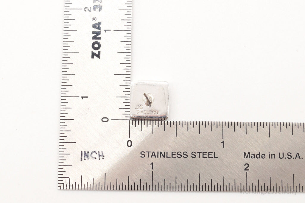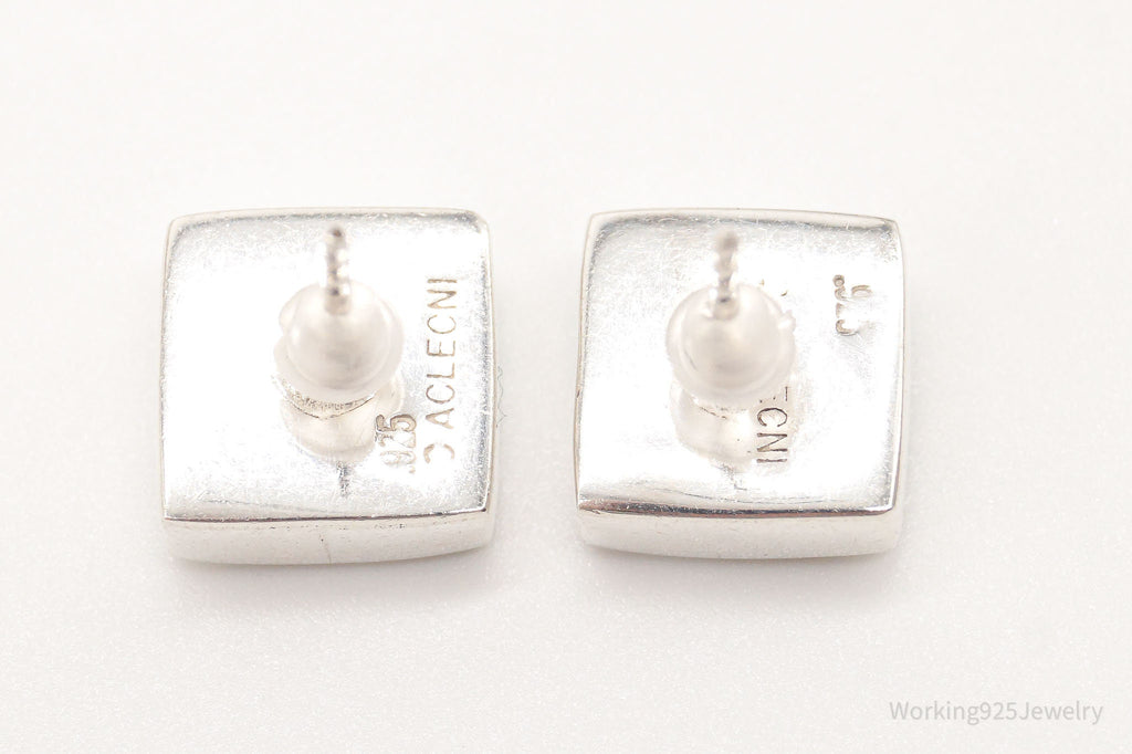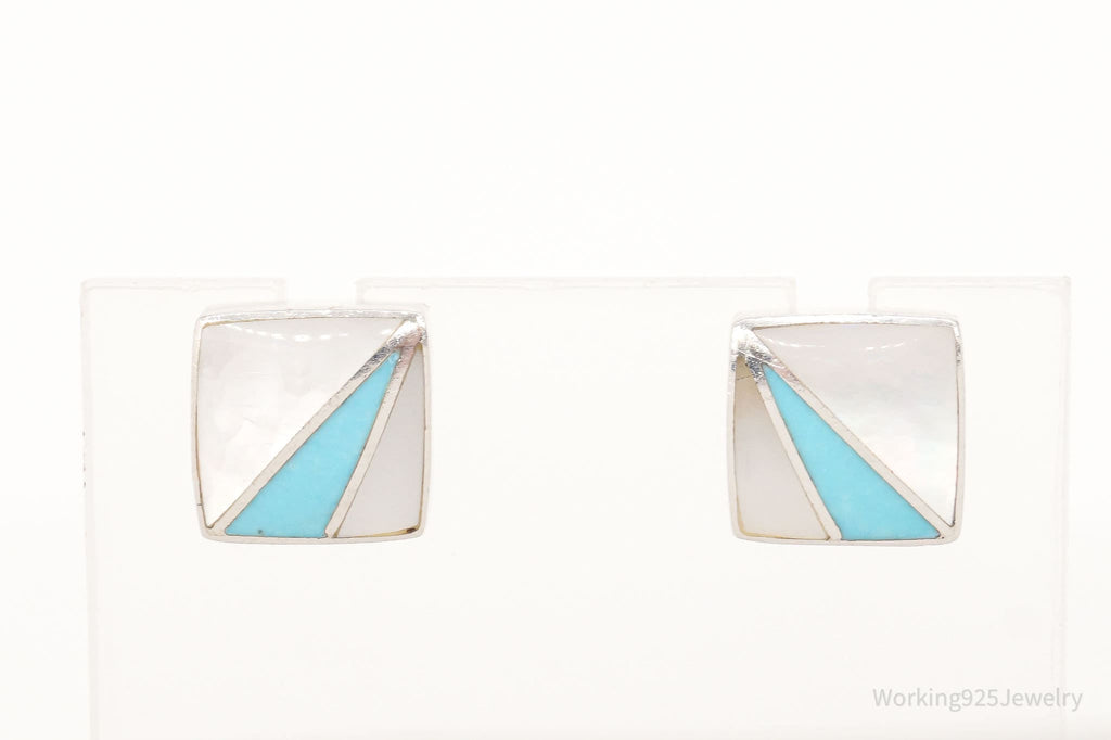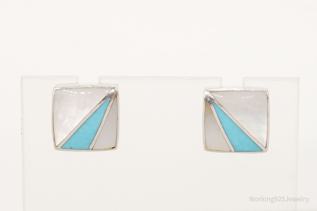 Vintage 90s Designer Acleoni Mother Of Pearl Turquoise Sterling Silver Earrings