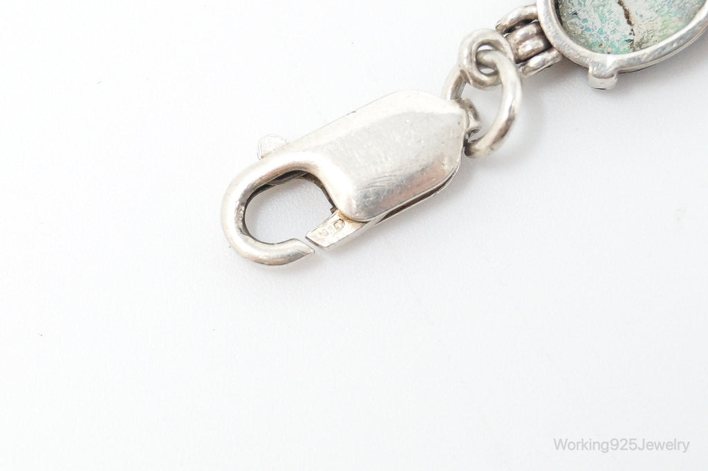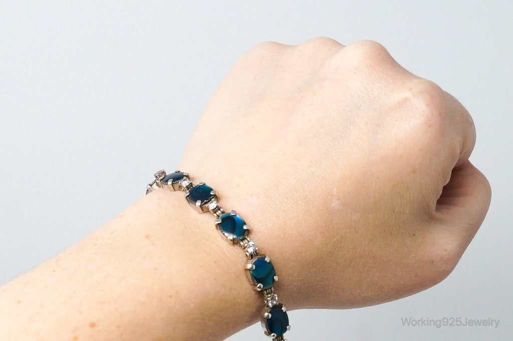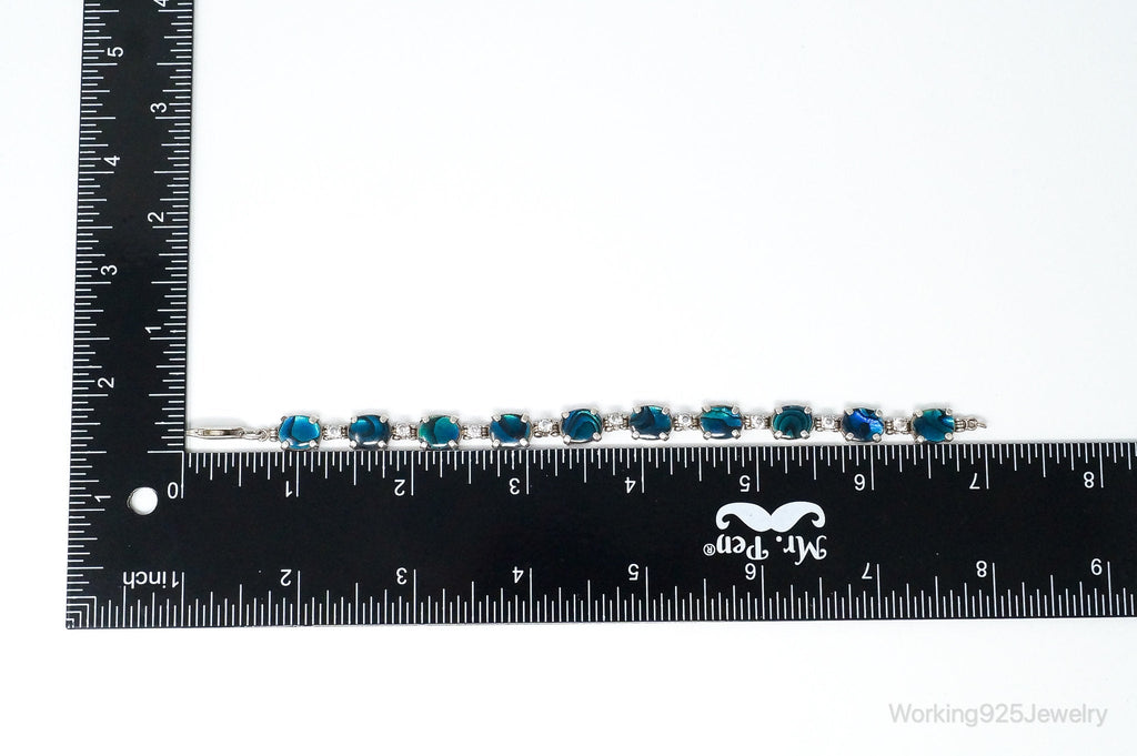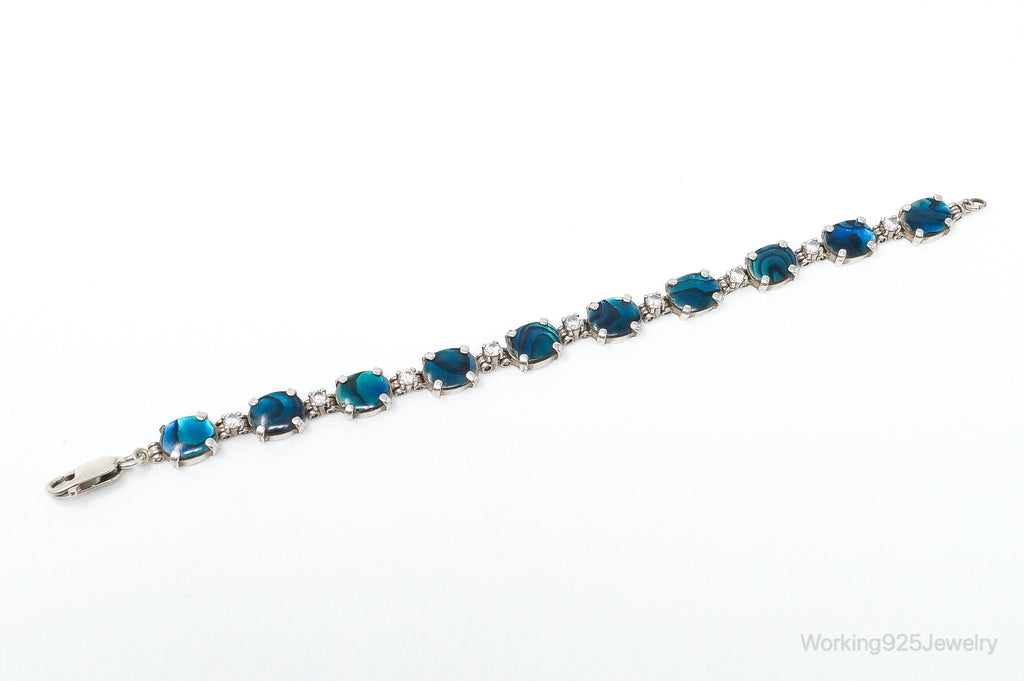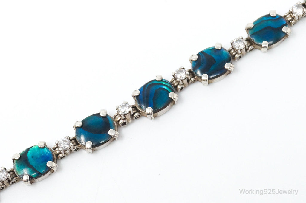 Vintage Abalone Paua Shell Cubic Zirconia Sterling Silver Bracelet