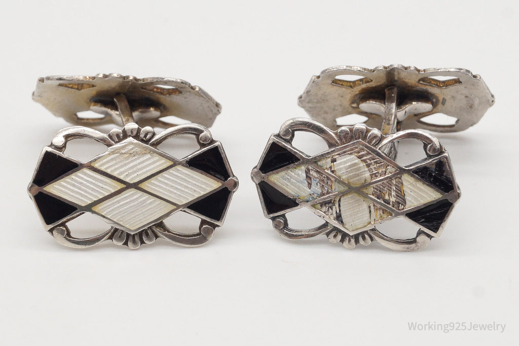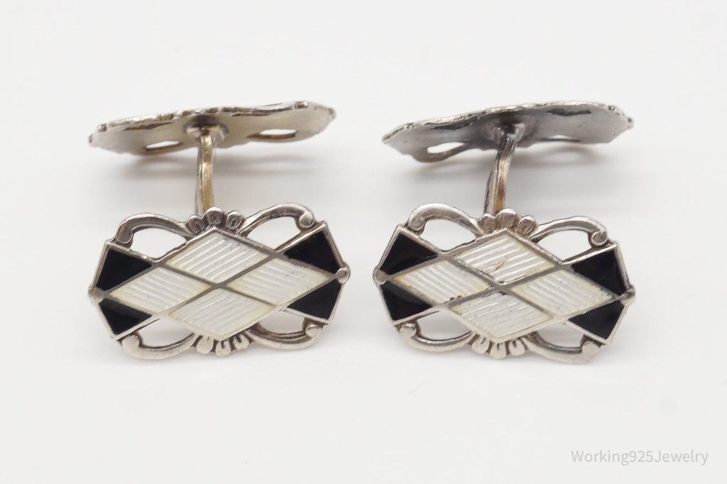 Vintage Aksel Holmsen Norne Enamel Sterling Silver Cufflinks