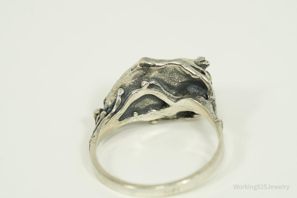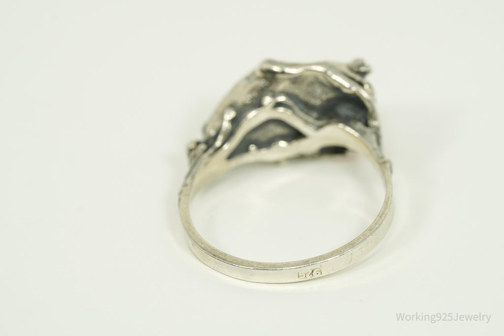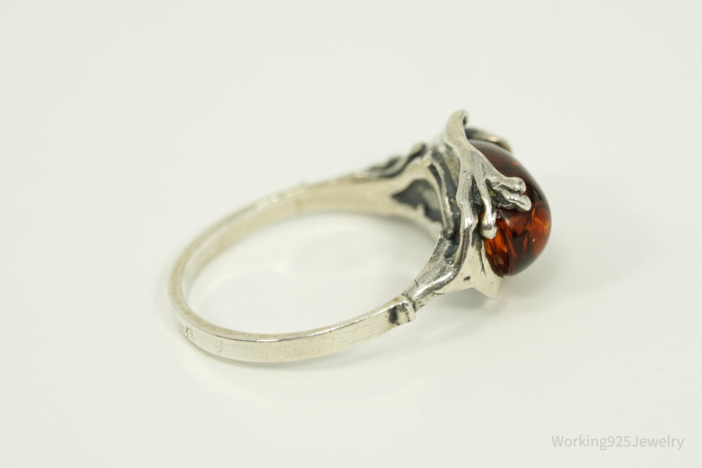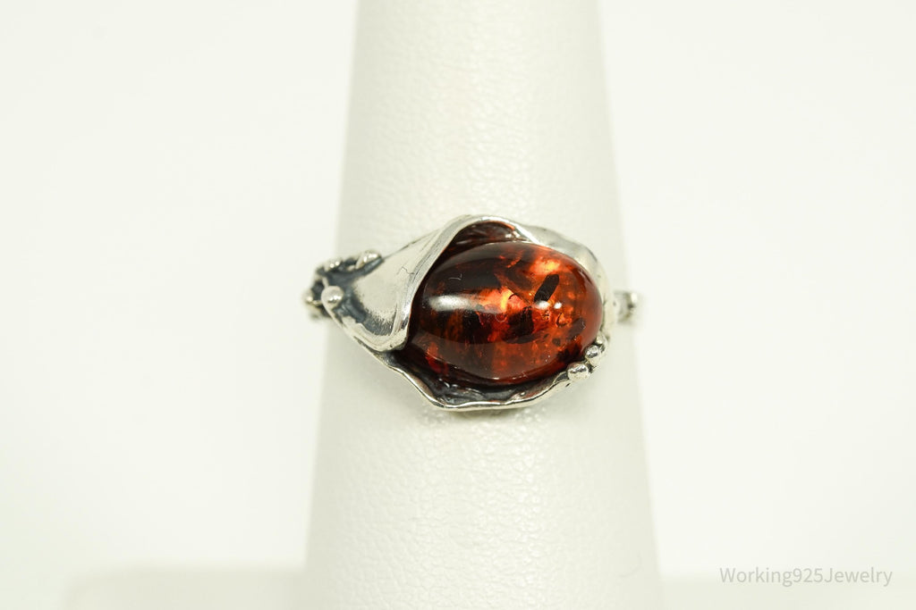 Vintage Amber Modernist Style Sterling Silver Ring - Size 6.5