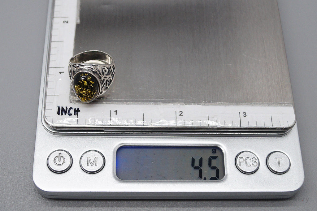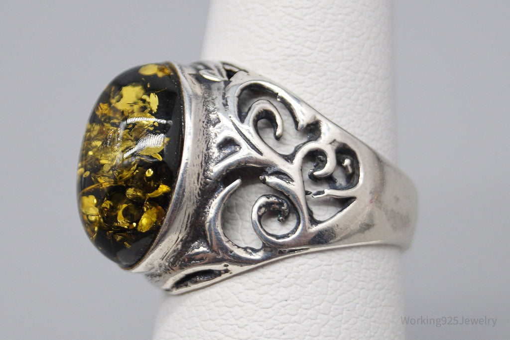 Vintage Amber Sterling Silver Ring - Size 5.25