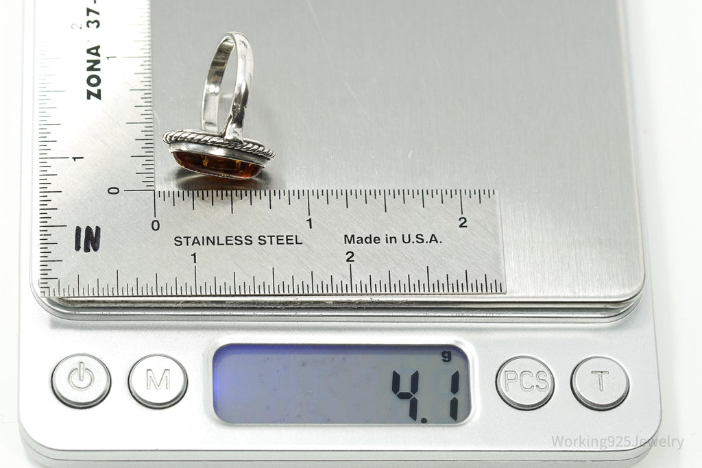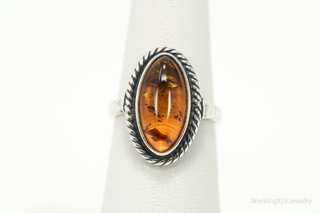 Vintage Amber Sterling Silver Ring - Size 5.75