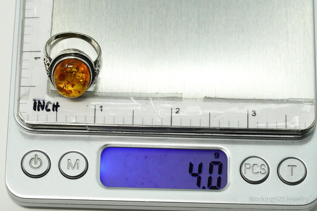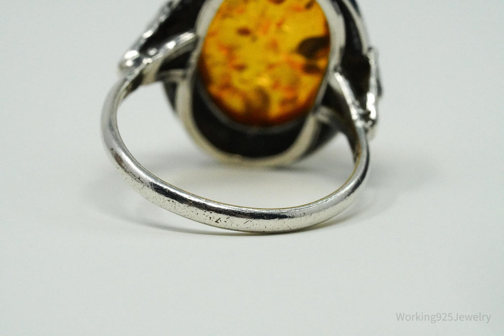 Vintage Amber Sterling Silver Ring - Size 7