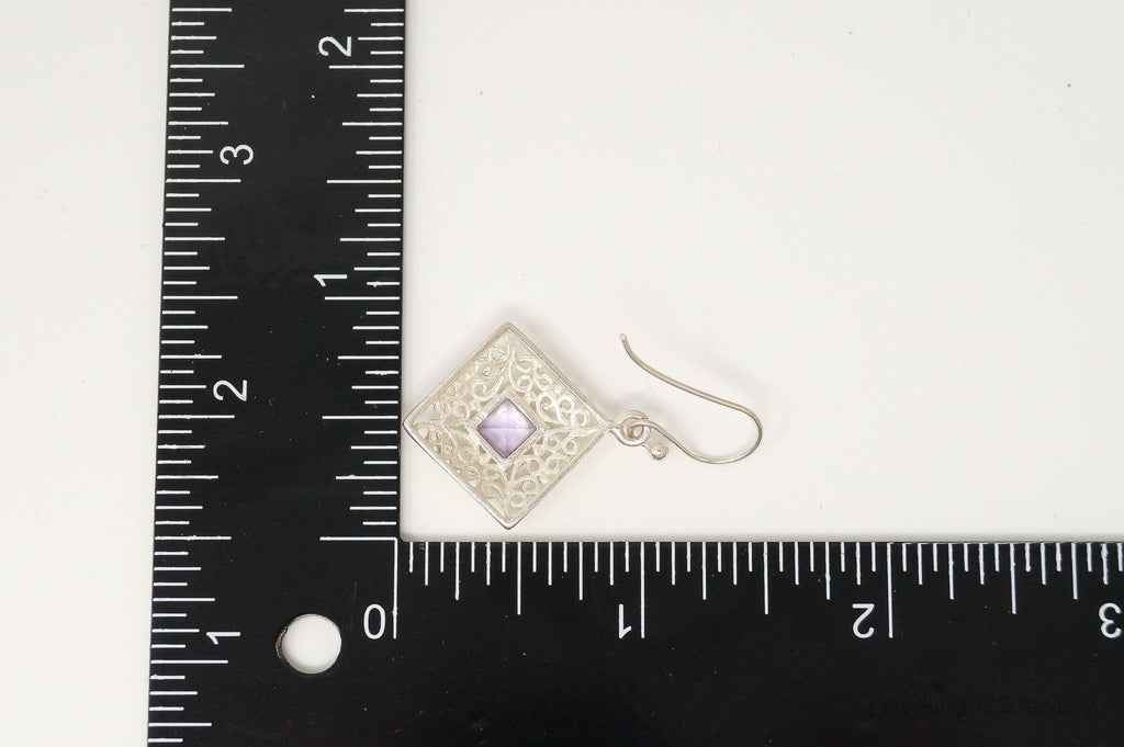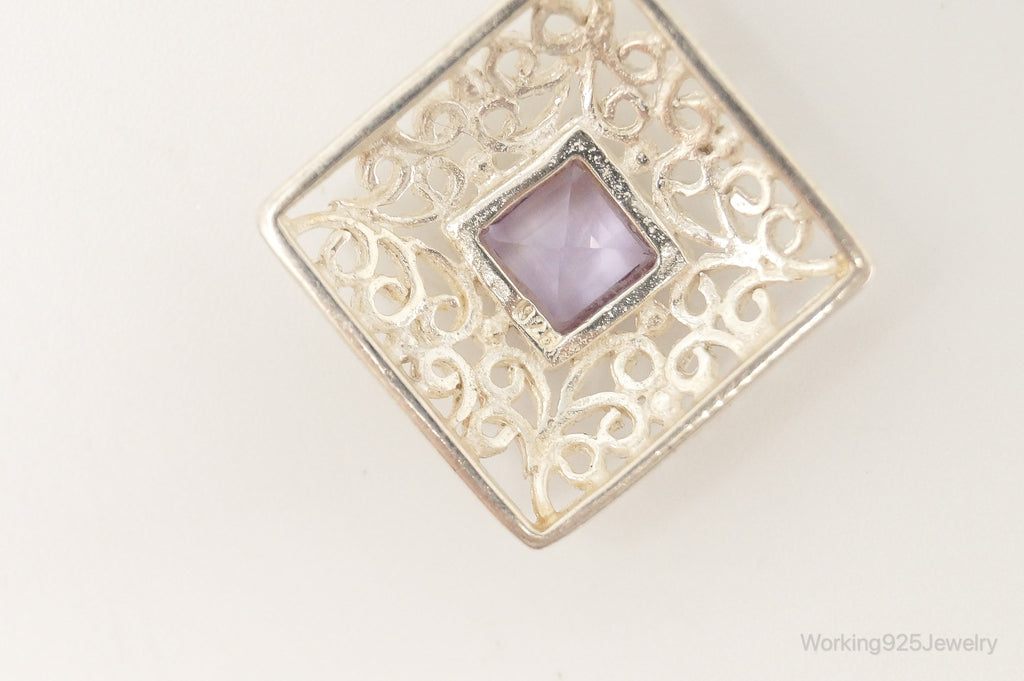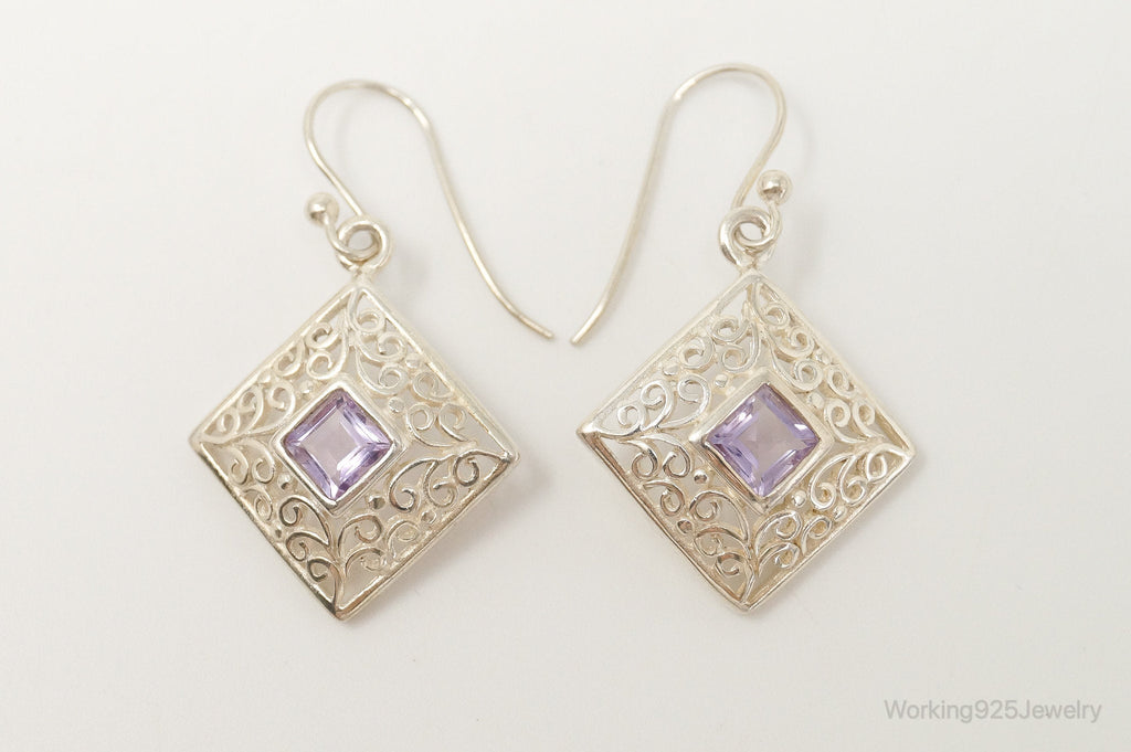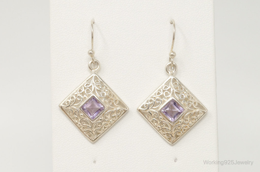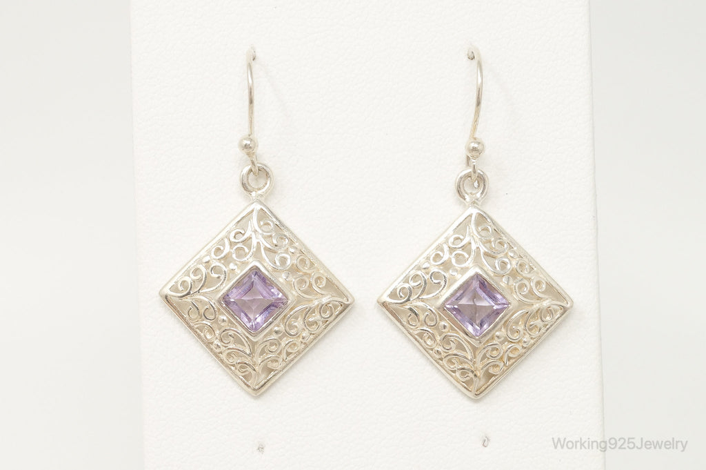 Vintage Amethyst Bali Style Dangle Sterling Silver Earrings