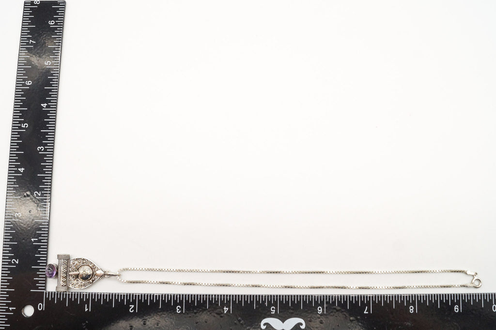 Vintage Amethyst Bali Style Filigree Sterling Silver Necklace