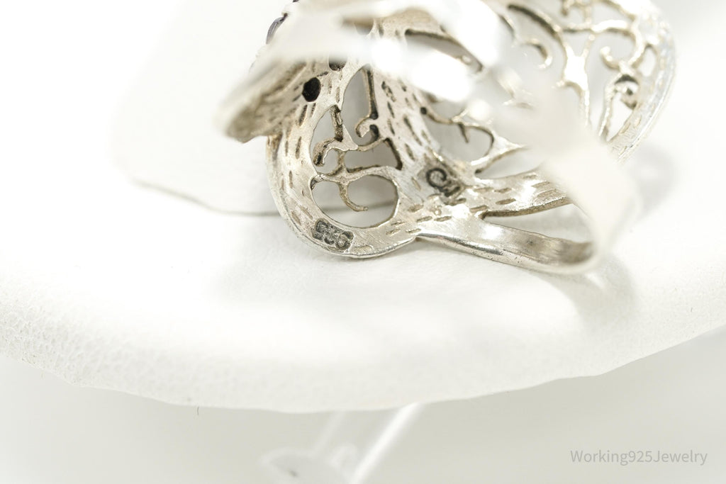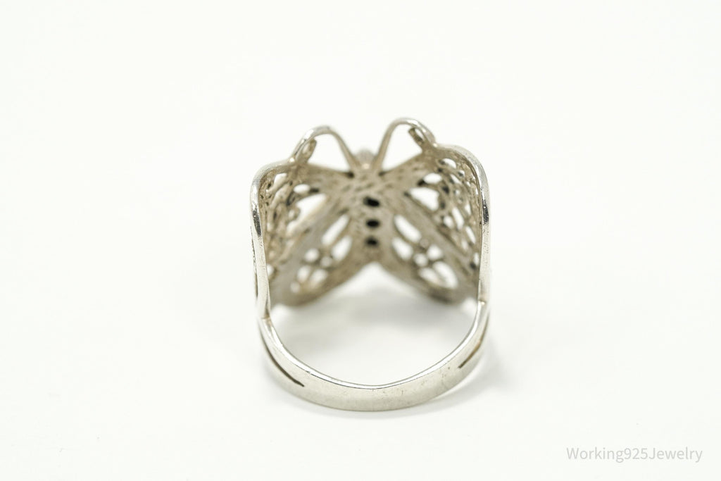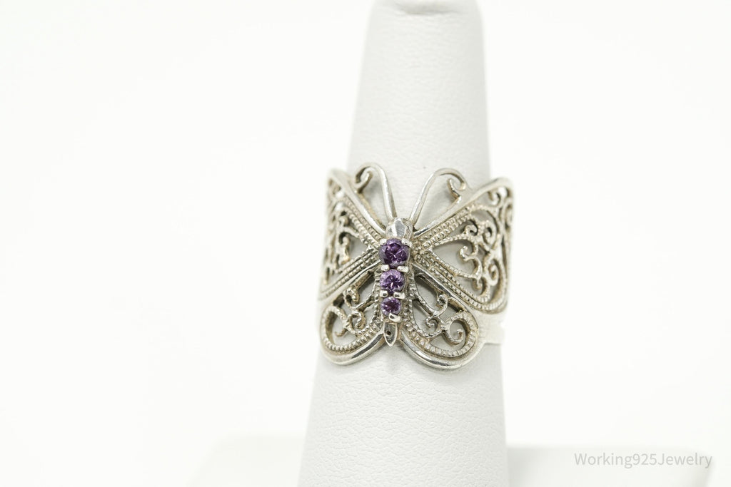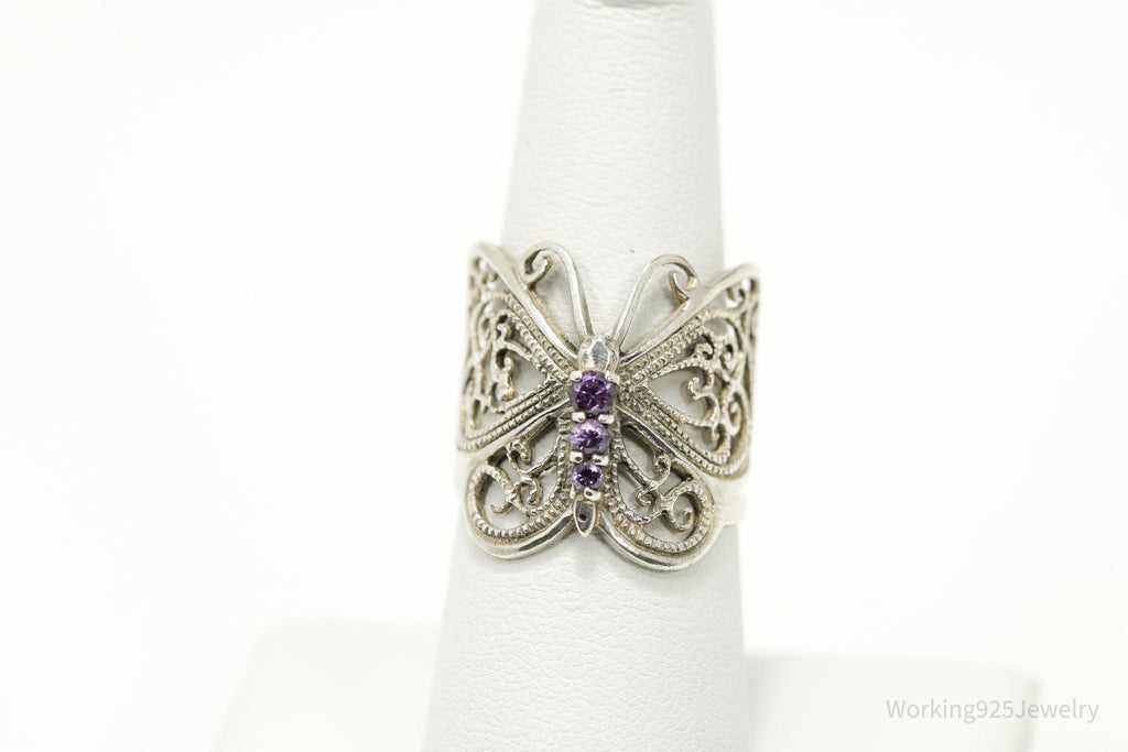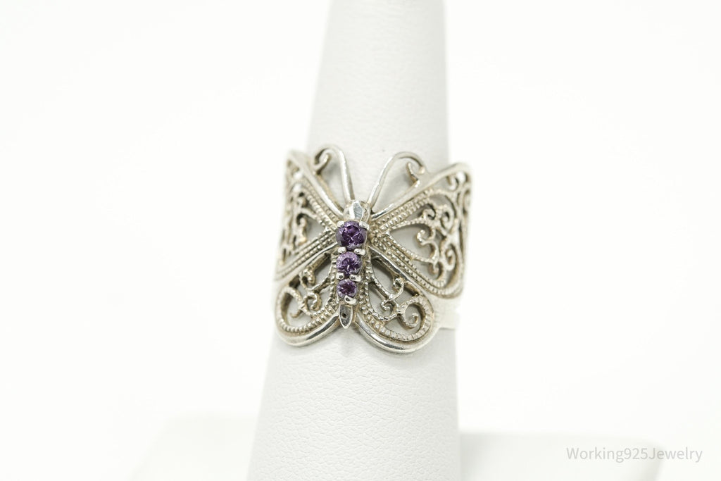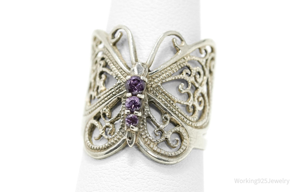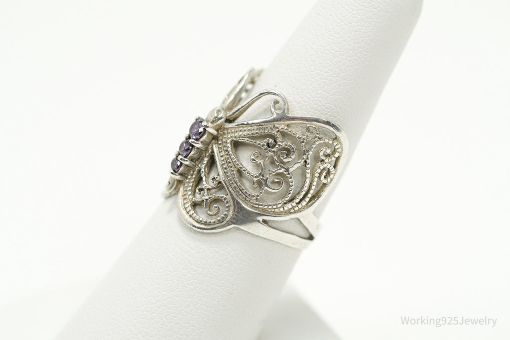 Vintage Amethyst Butterfly Sterling Silver Ring - Size 7.75