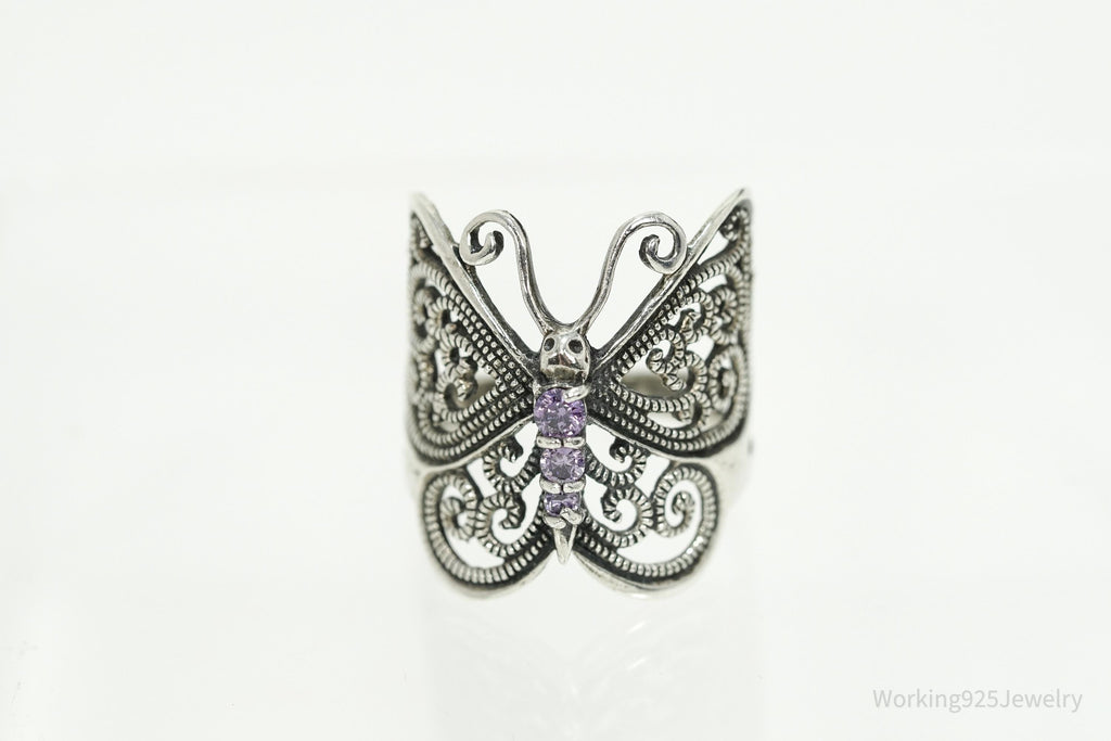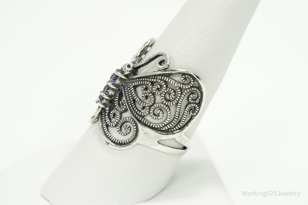 Vintage Amethyst Butterfly Sterling Silver Ring - Size 9.25