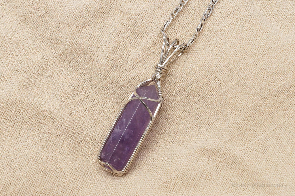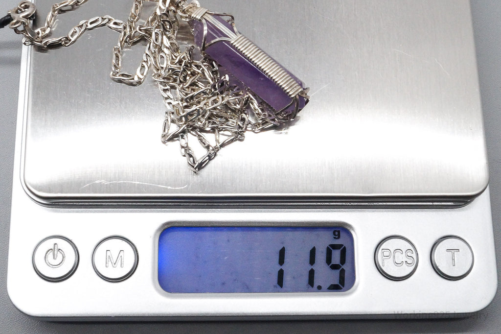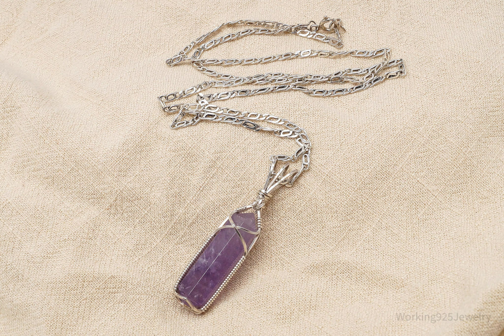 Vintage Amethyst Crystal Sterling Silver Necklace 2"