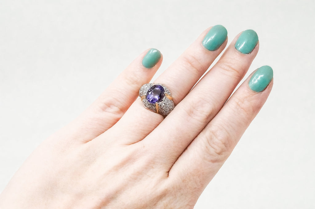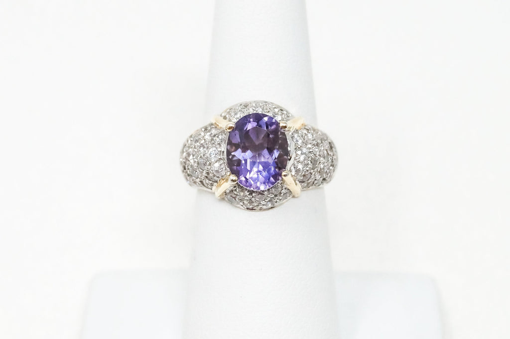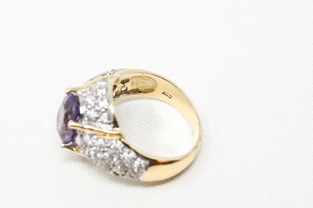 Vintage Amethyst Cubic Zirconia Gold Vermeil Sterling Silver Ring - Sz 6.75