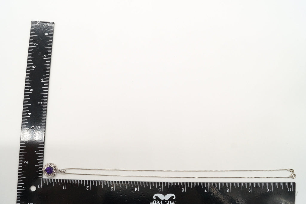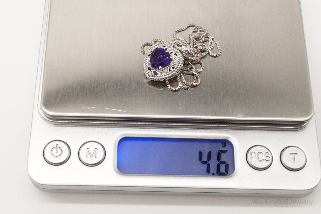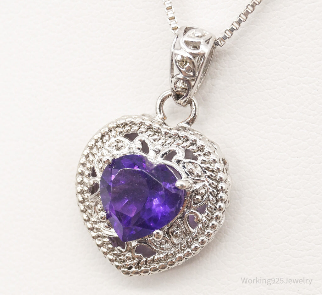 Vintage Amethyst Cubic Zirconia Heart Sterling Silver Necklace