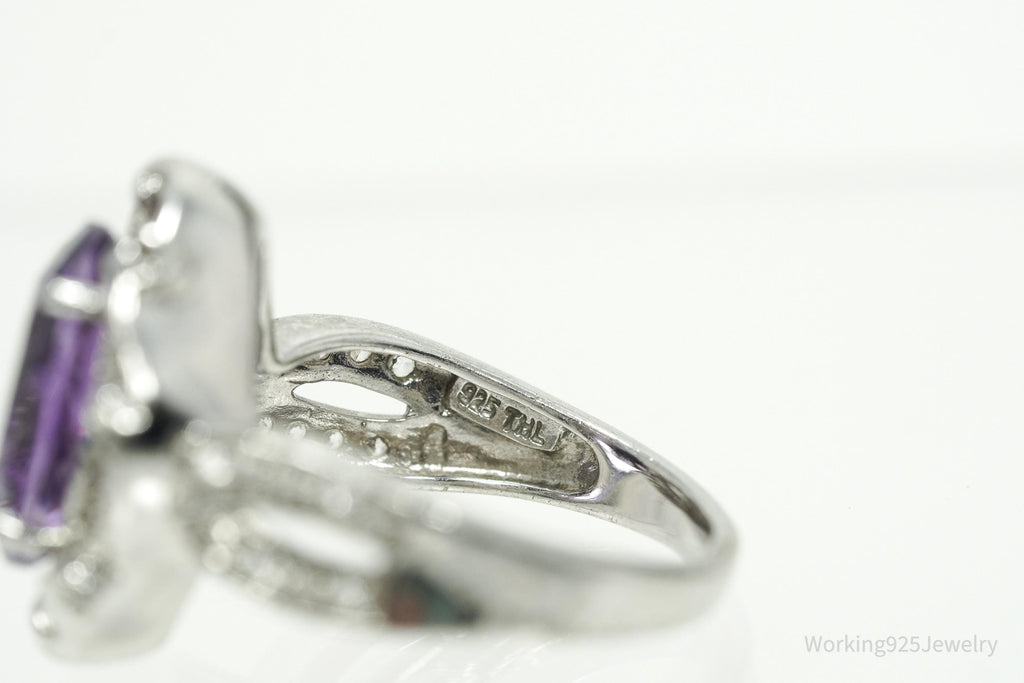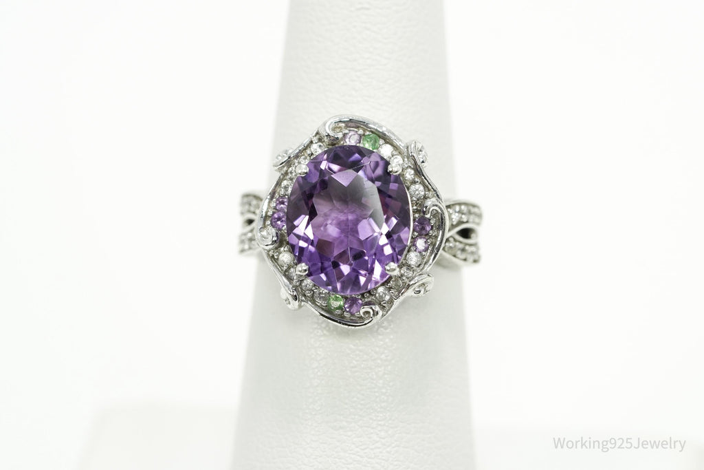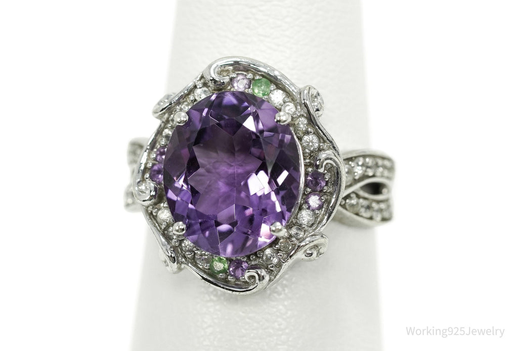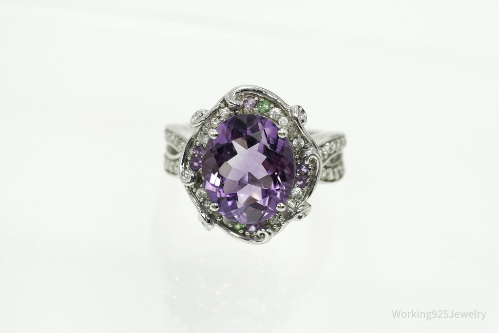 Vintage Amethyst, Cubic Zirconia, & Peridot Sterling Silver Ring - Size 6