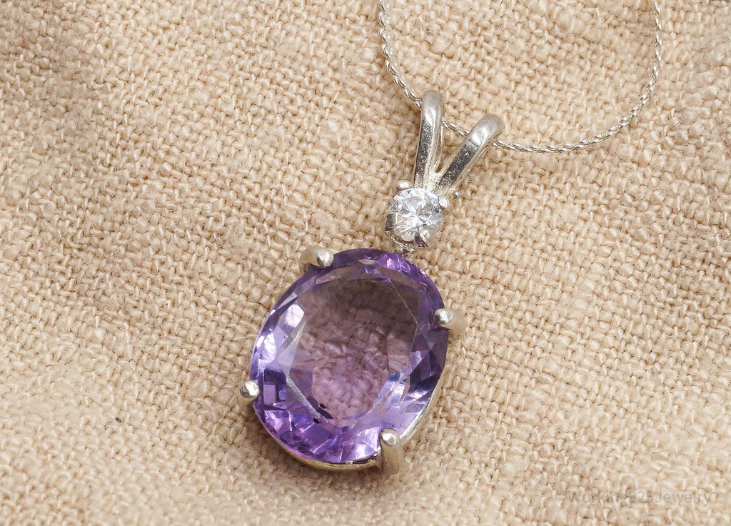 Vintage Amethyst Cubic Zirconia Sterling Silver Necklace 16"