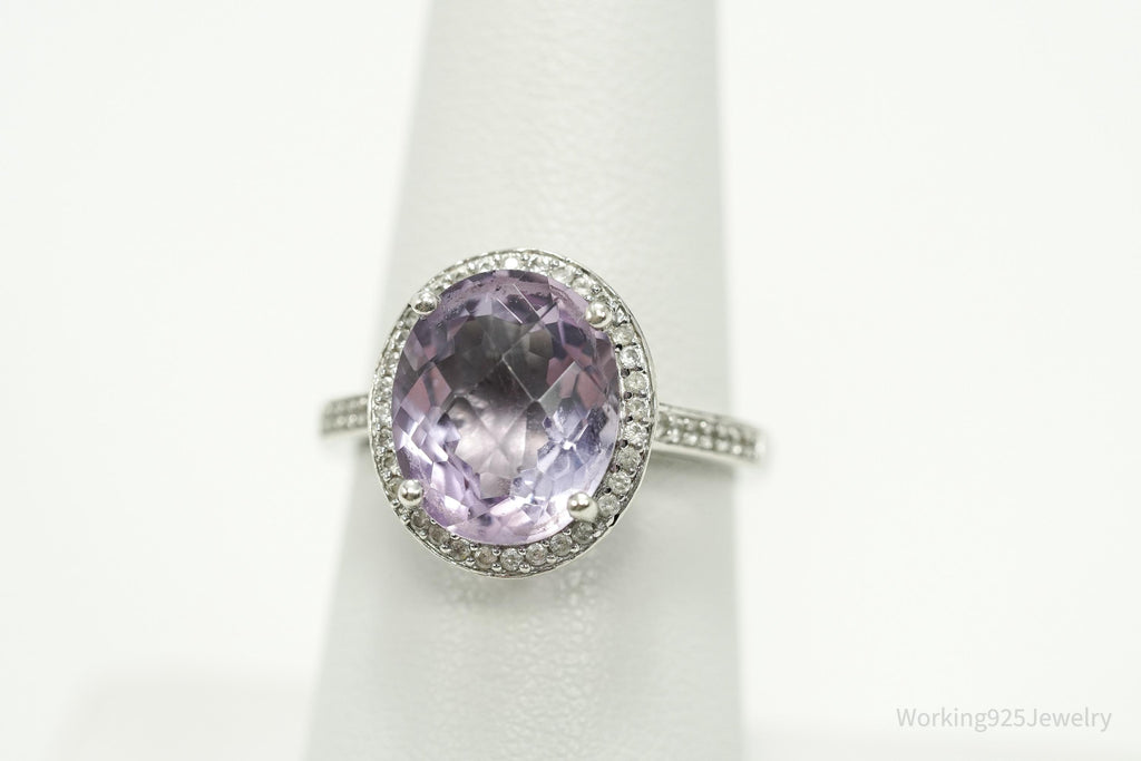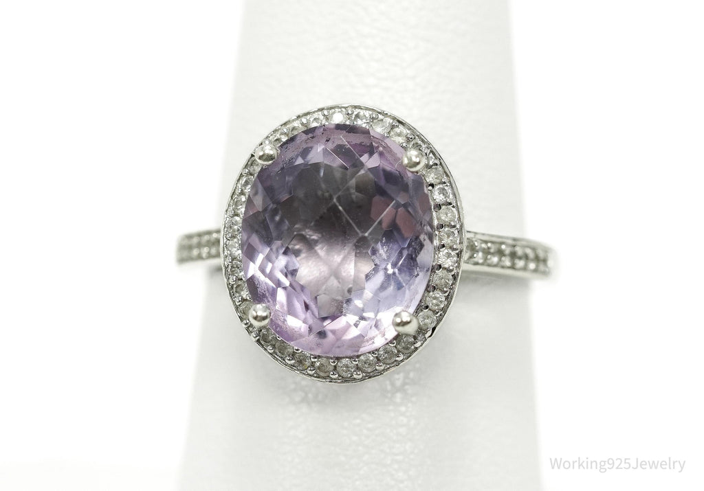 Vintage Amethyst & Cubic Zirconia Sterling Silver Ring - Size 7