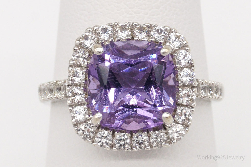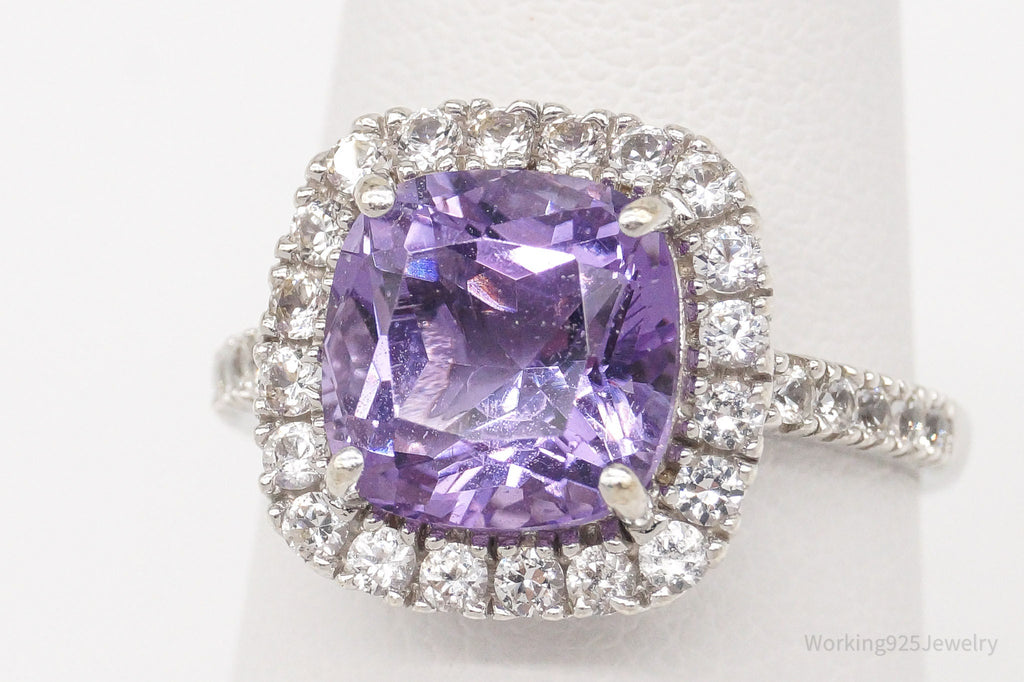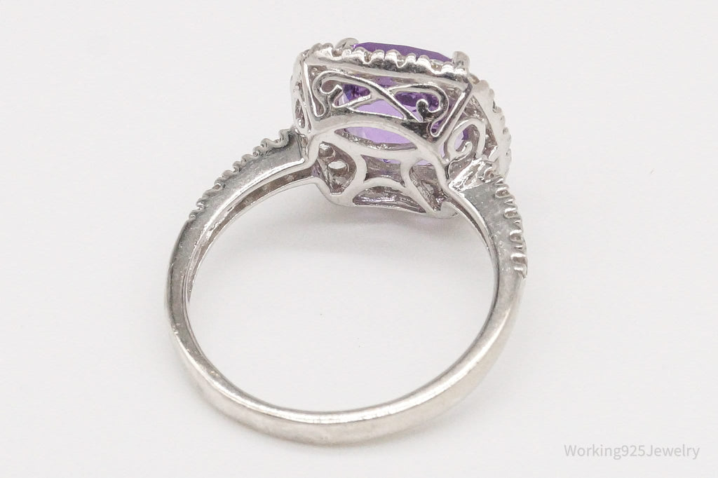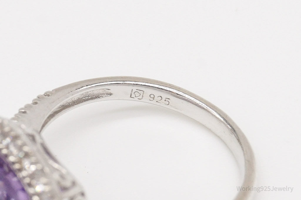 Vintage Amethyst Cubic Zirconia Sterling Silver Ring - Size 6.75
