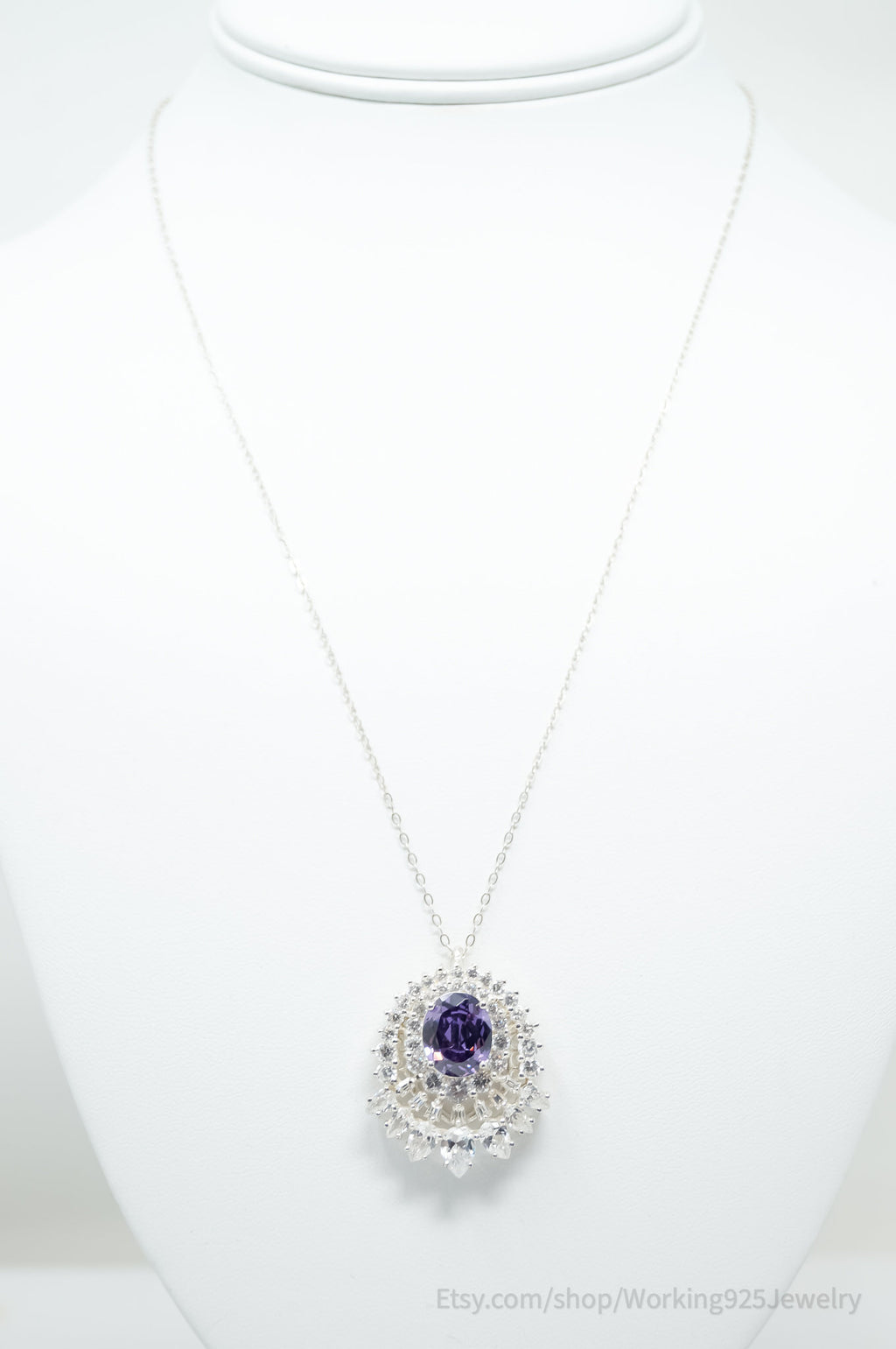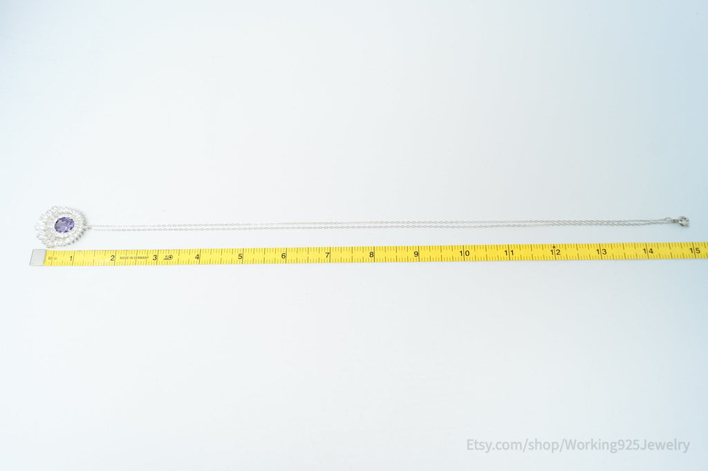 Vintage Amethyst CZ Art Deco Sterling Silver Long Chain Necklace