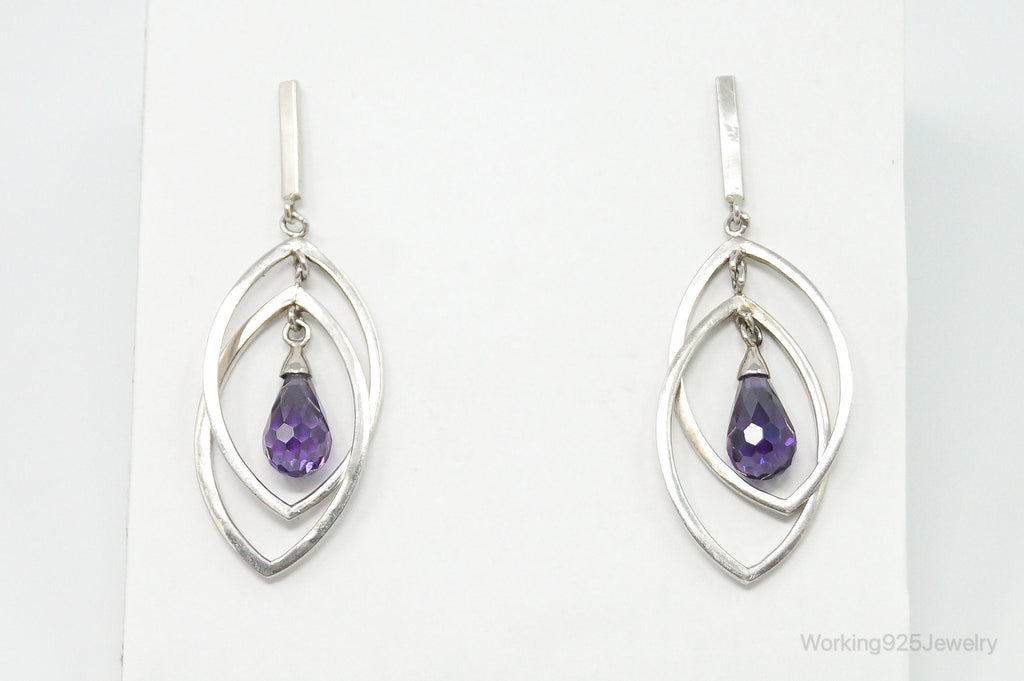 Vintage Amethyst Dangle Sterling Silver Earrings