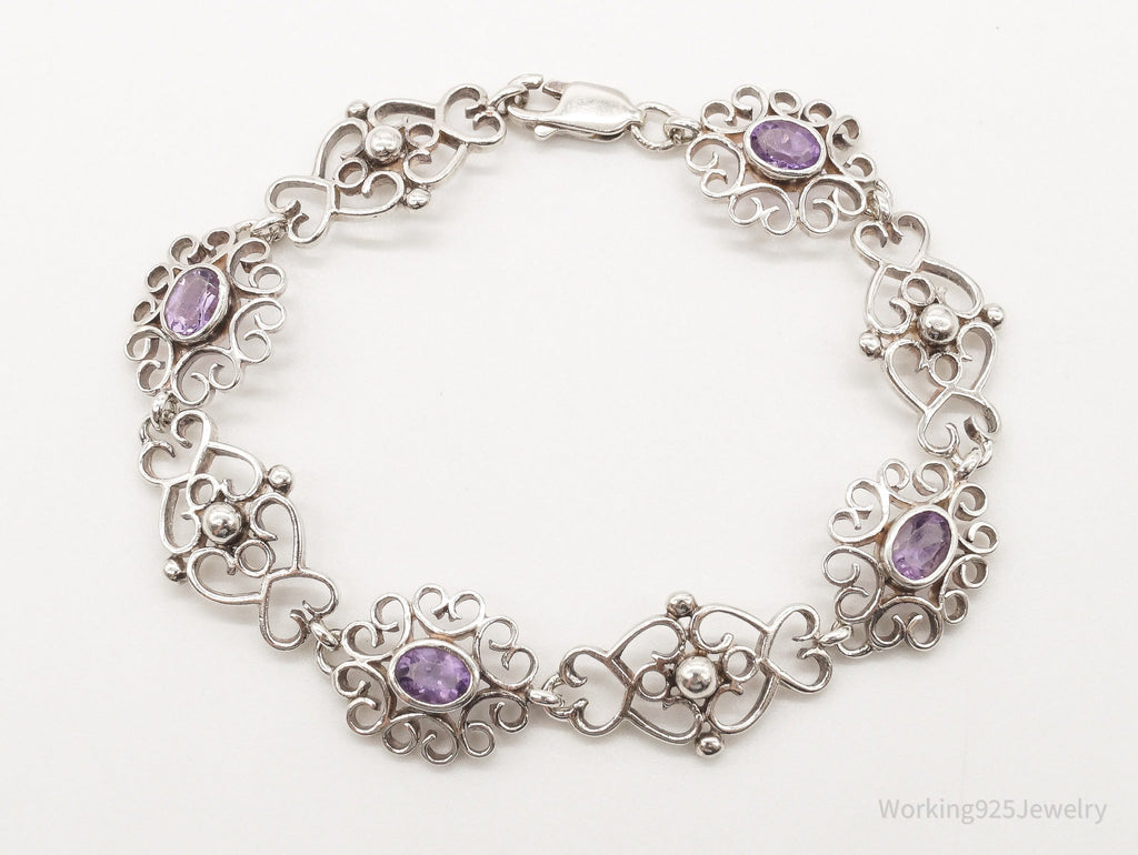 Vintage Amethyst Filigree Sterling Silver Bracelet