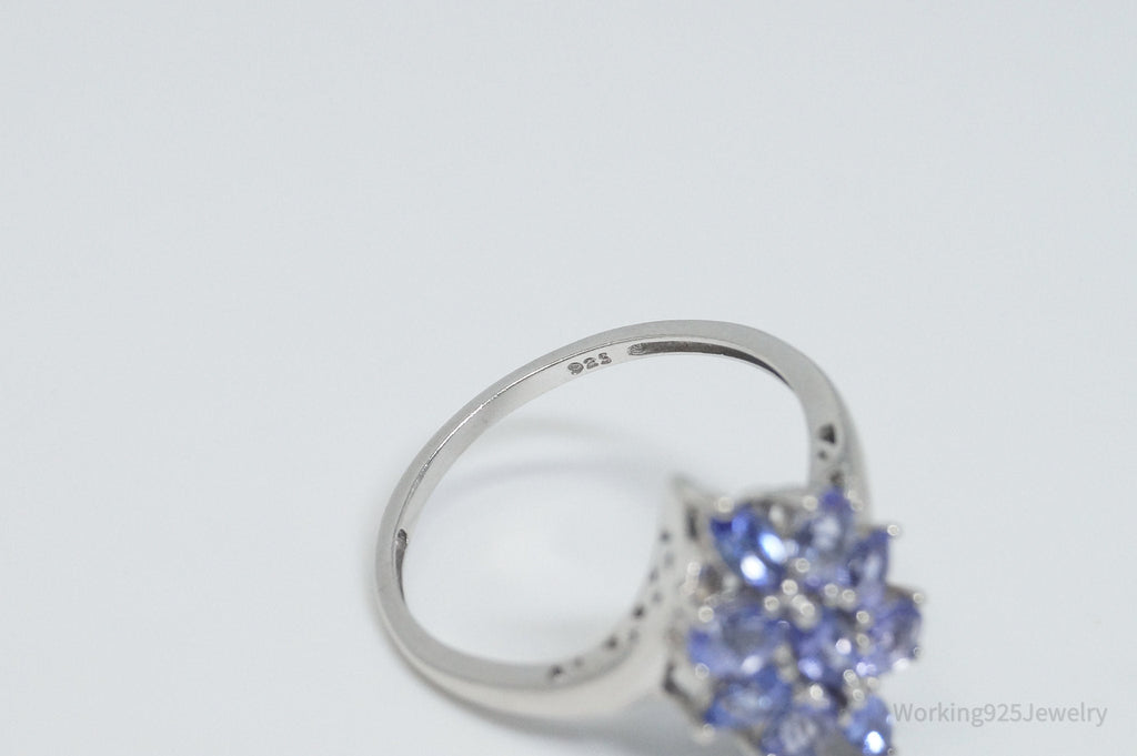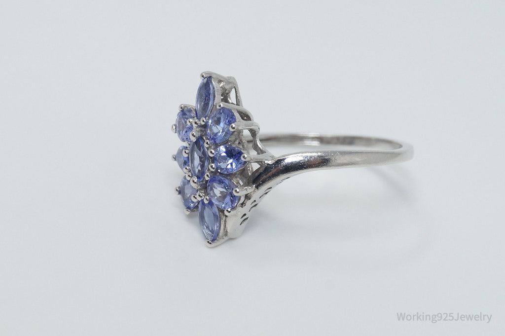 Vintage Amethyst Flower Sterling Silver Ring - Sz 10