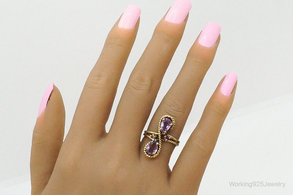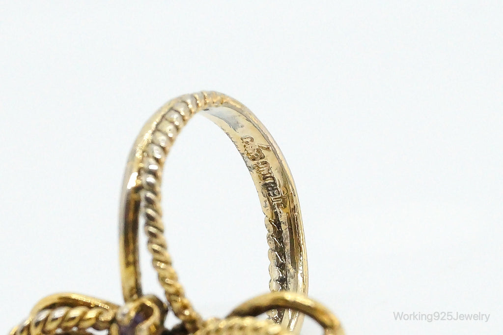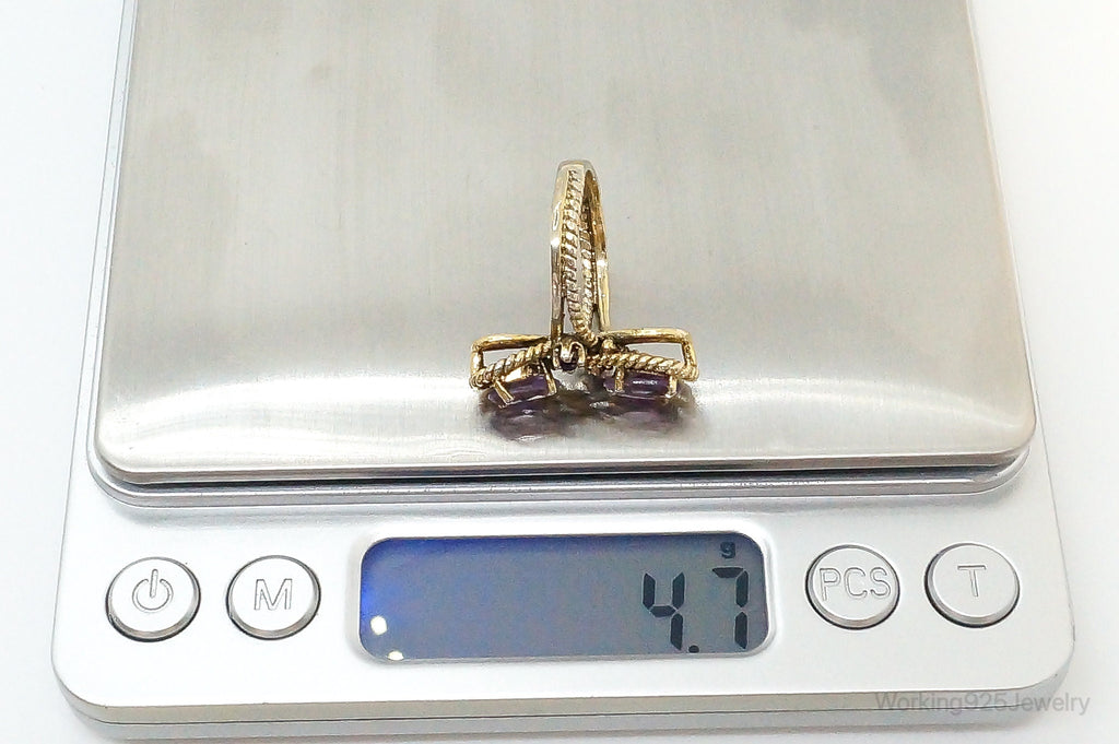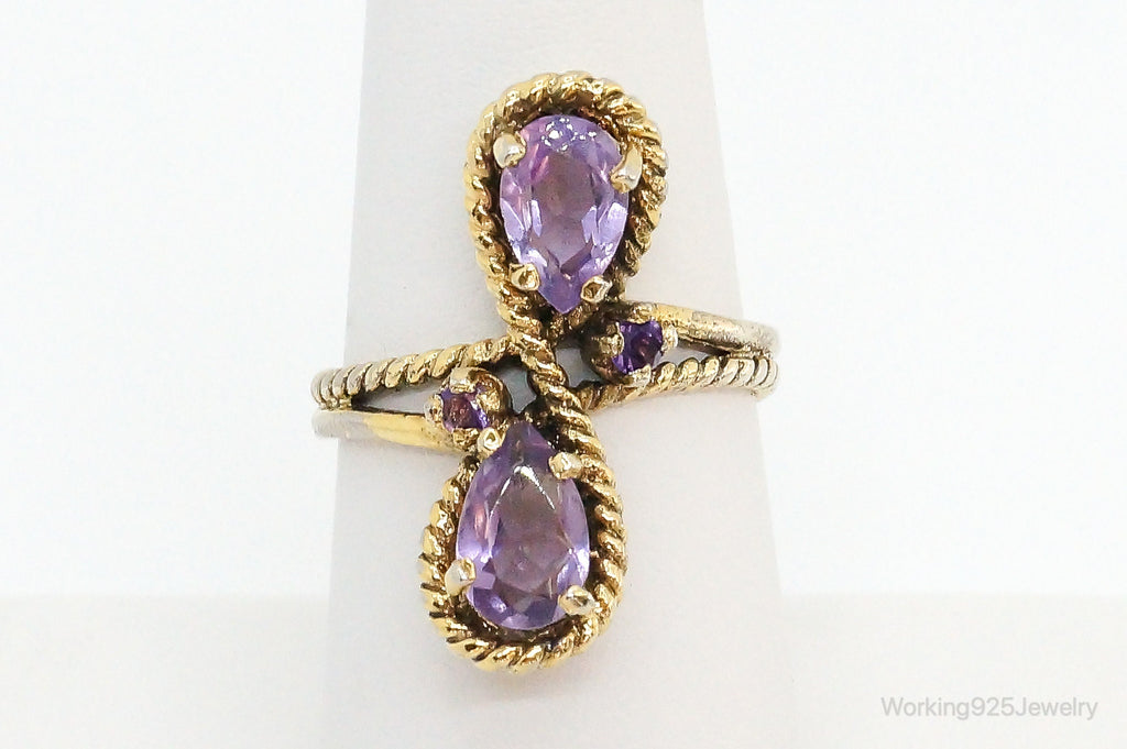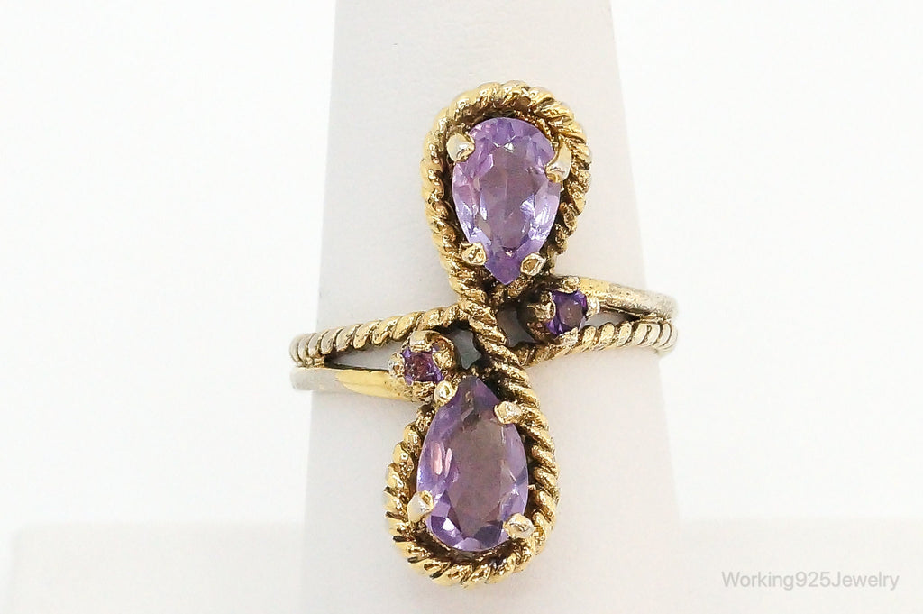 Vintage Amethyst Gold Vermeil Sterling Silver Ring - Size 6.75