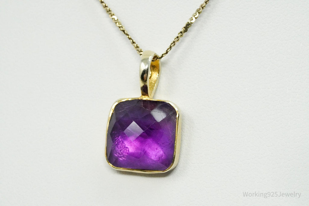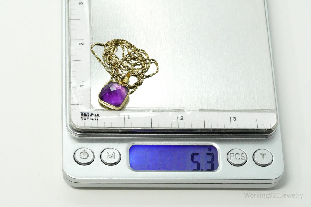 Vintage Amethyst Gold Washed Sterling Silver Necklace 18"