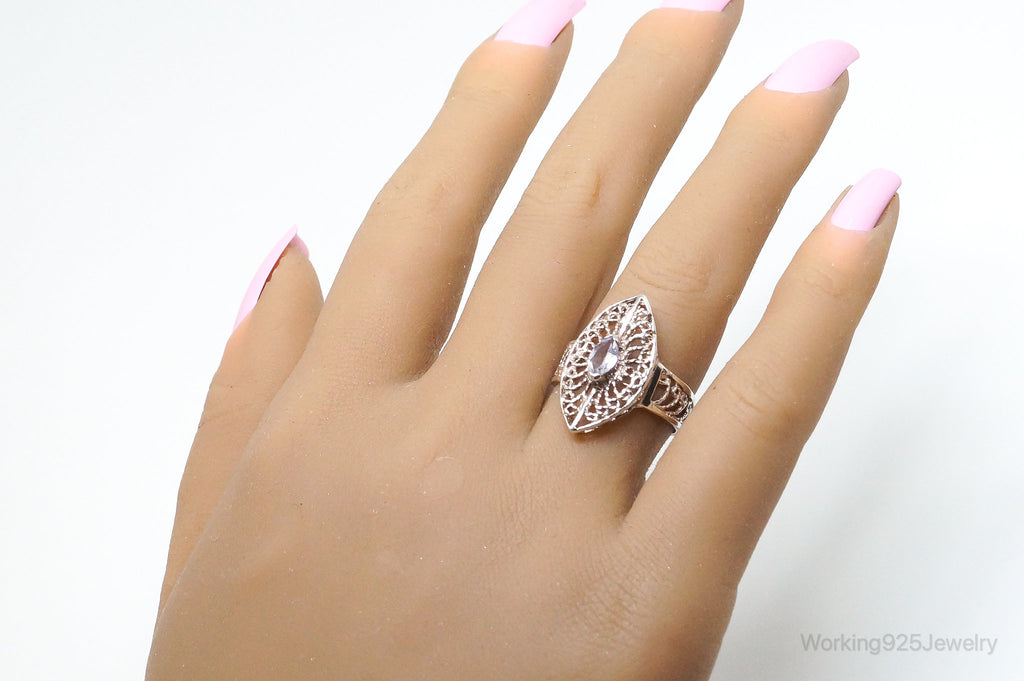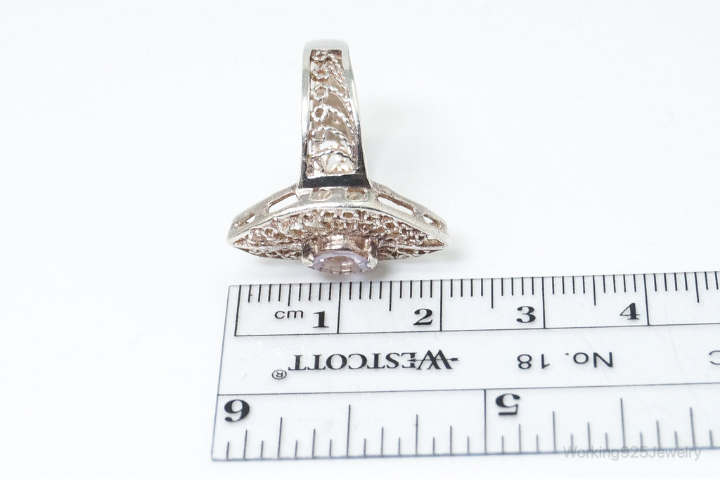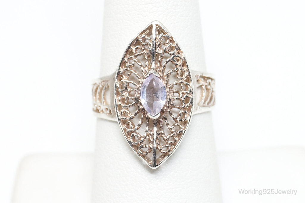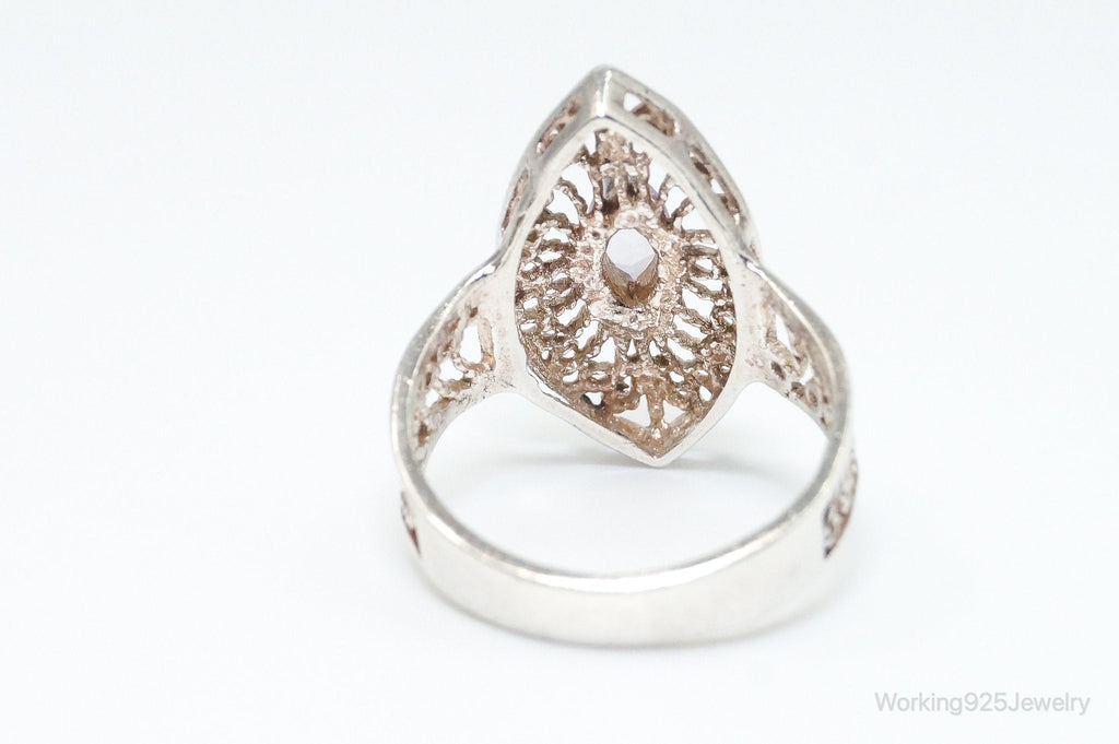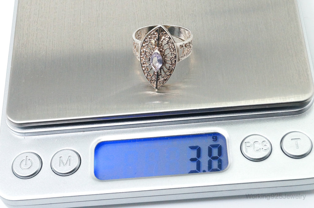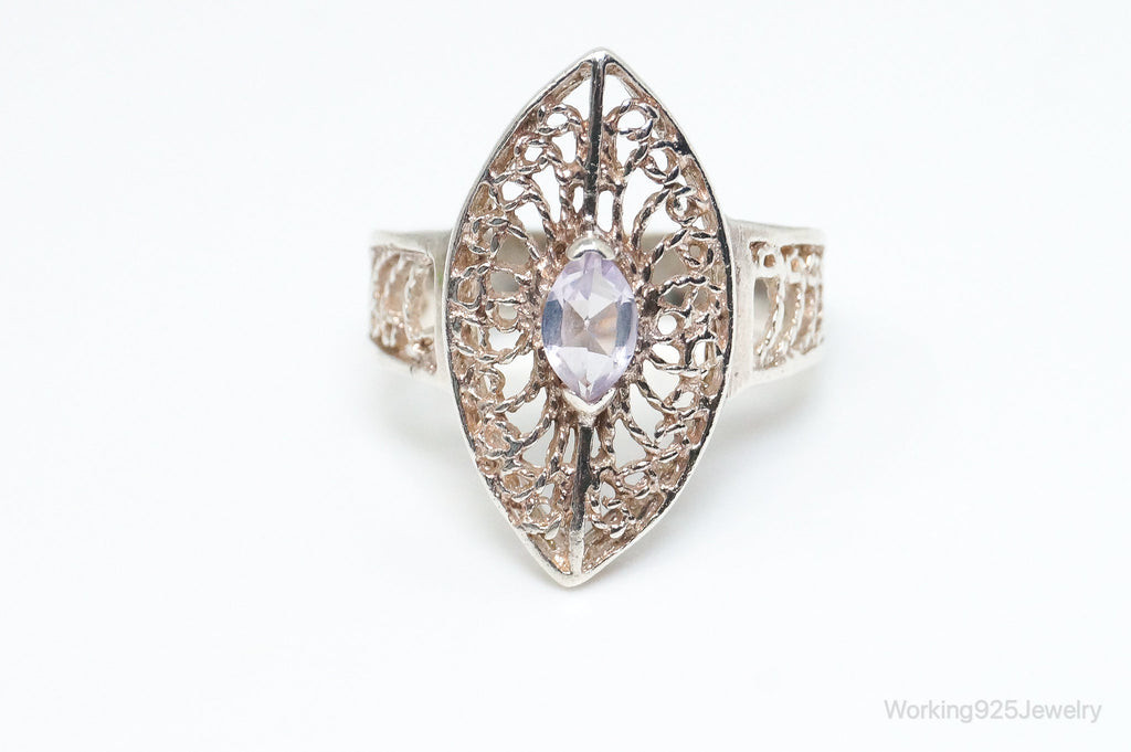 Vintage Amethyst Intricate Filigree Sterling Silver Ring SZ 7.5