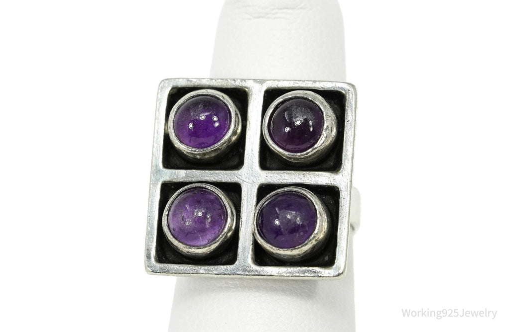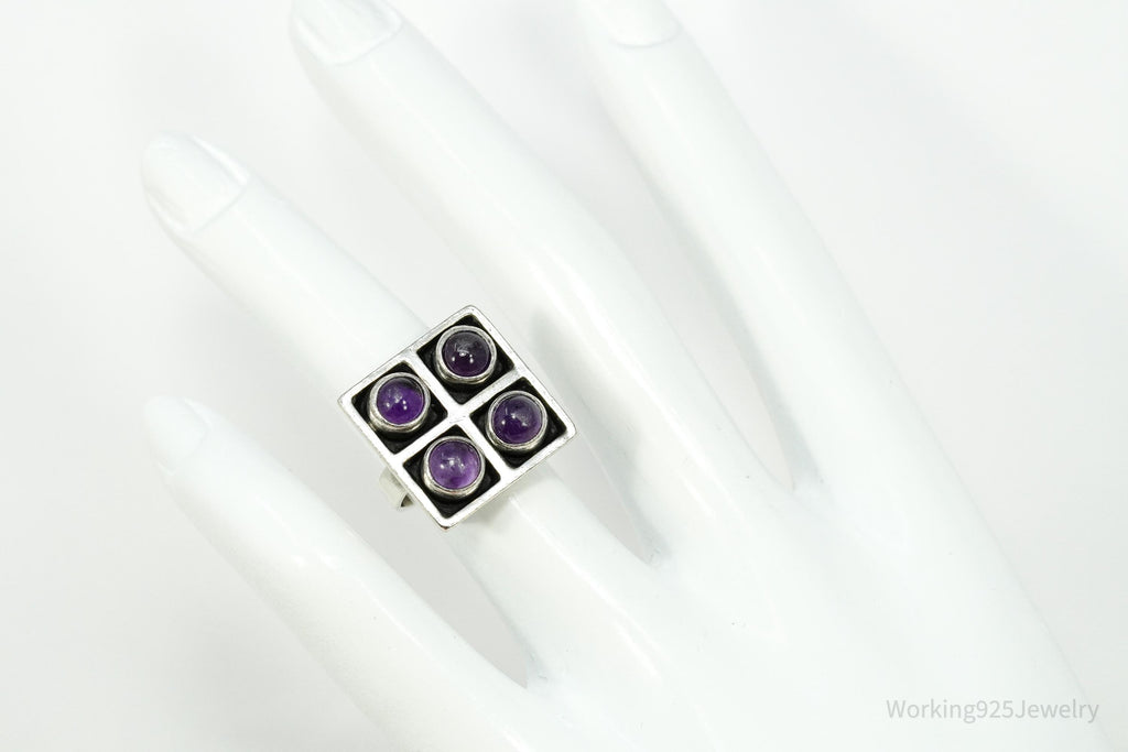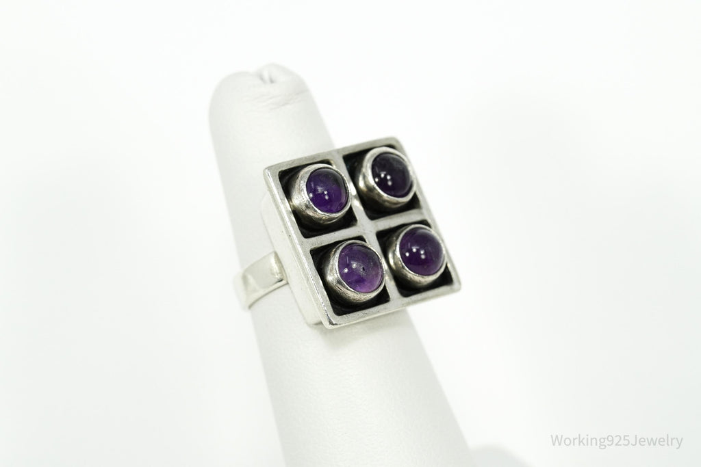 Vintage Amethyst Modernist 835 Silver Ring - Size 4.75 `