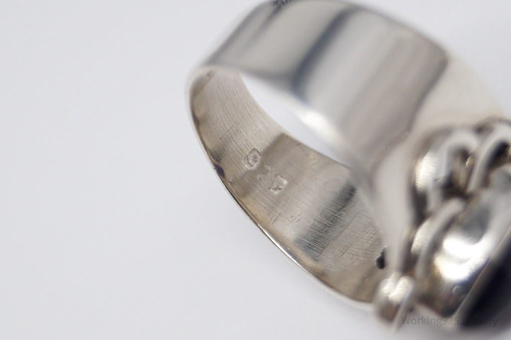 Vintage Amethyst Modernist Style Sterling Silver Ring - Size 6.25