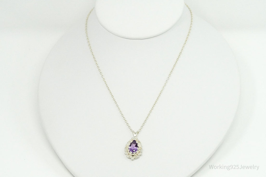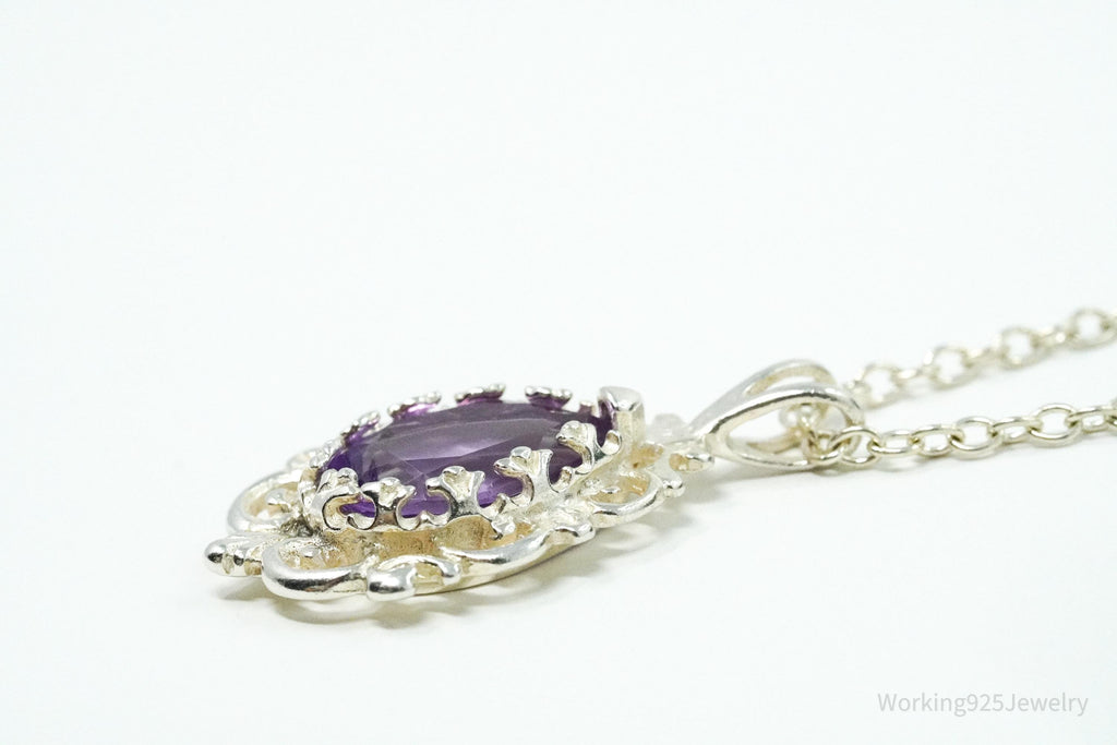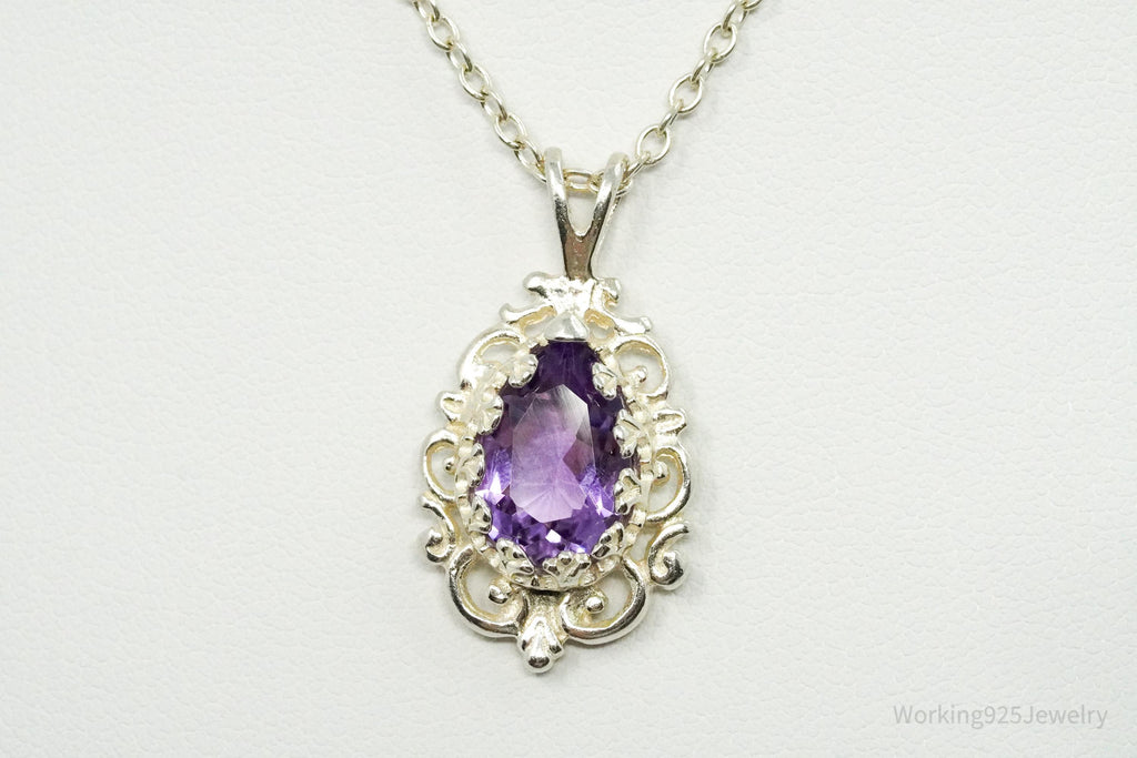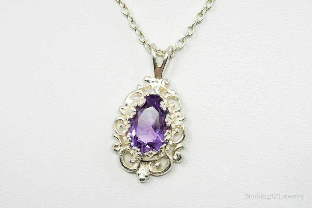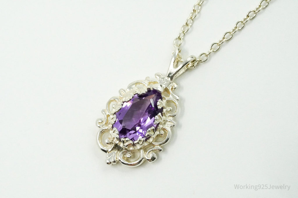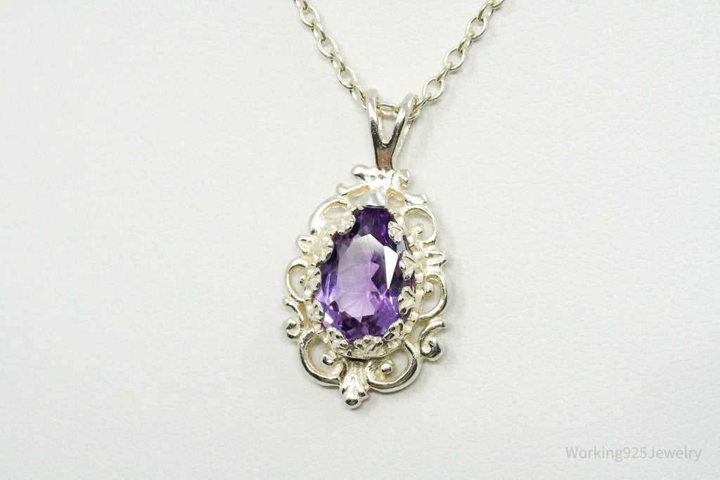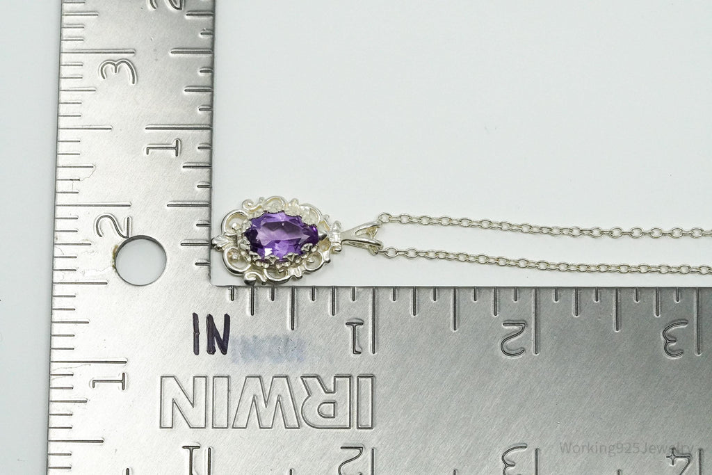 Vintage Amethyst Sterling Silver Chain Necklace 16"
