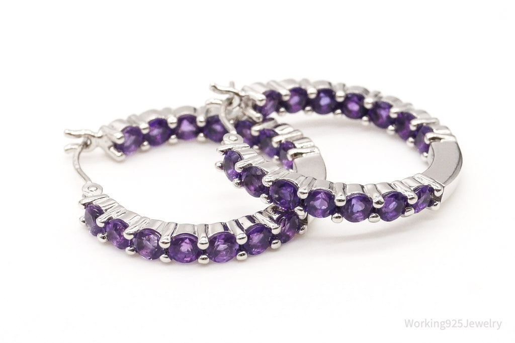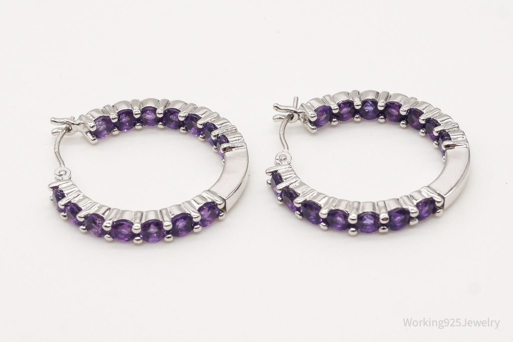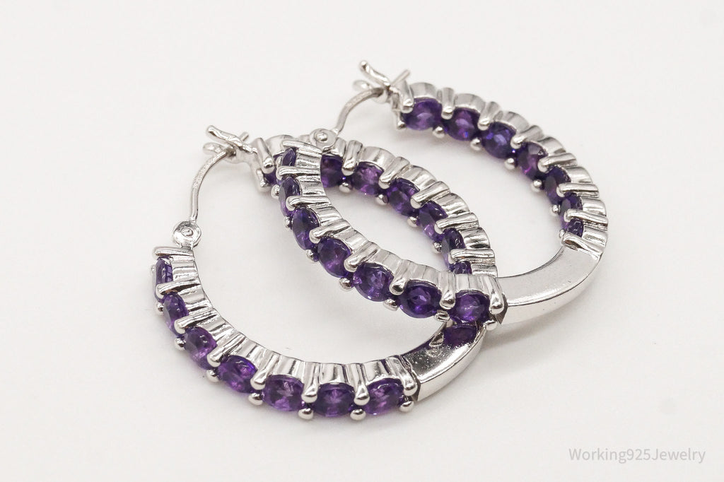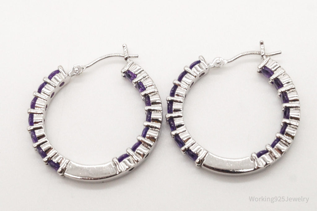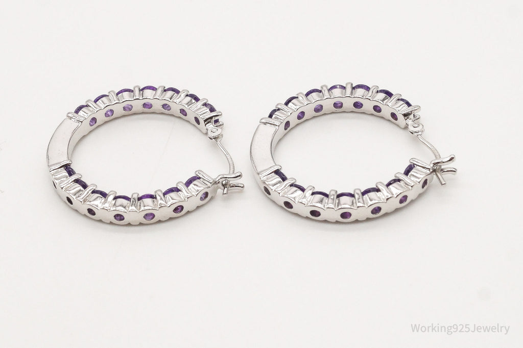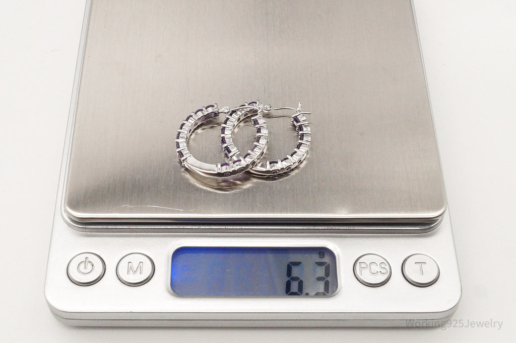 Vintage Amethyst Sterling Silver Hoop Earrings