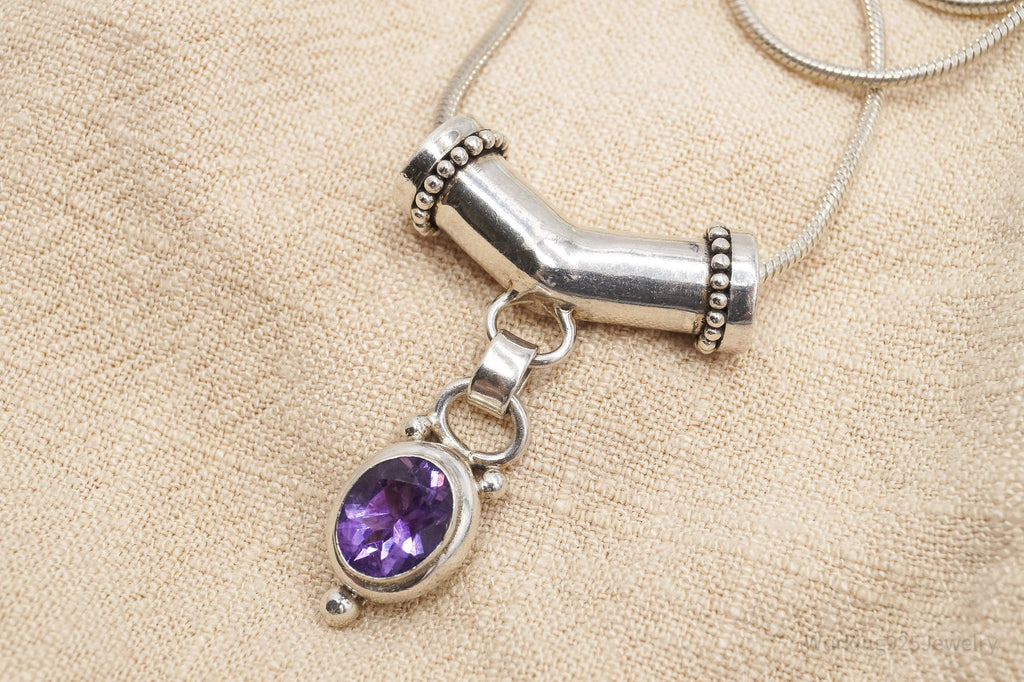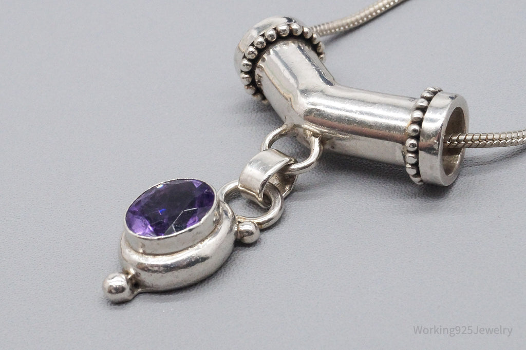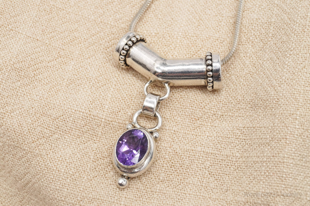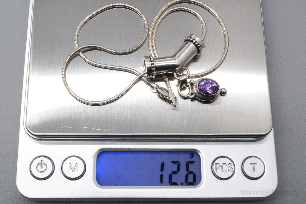 Vintage Amethyst Sterling Silver Necklace - 16"