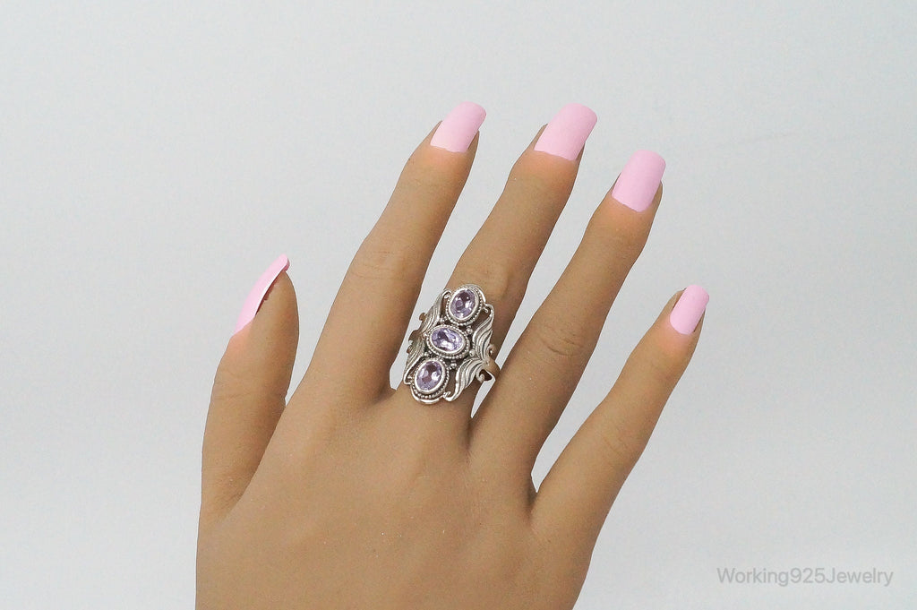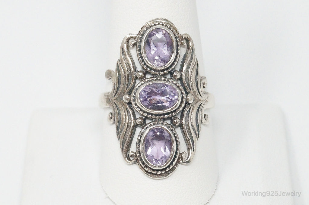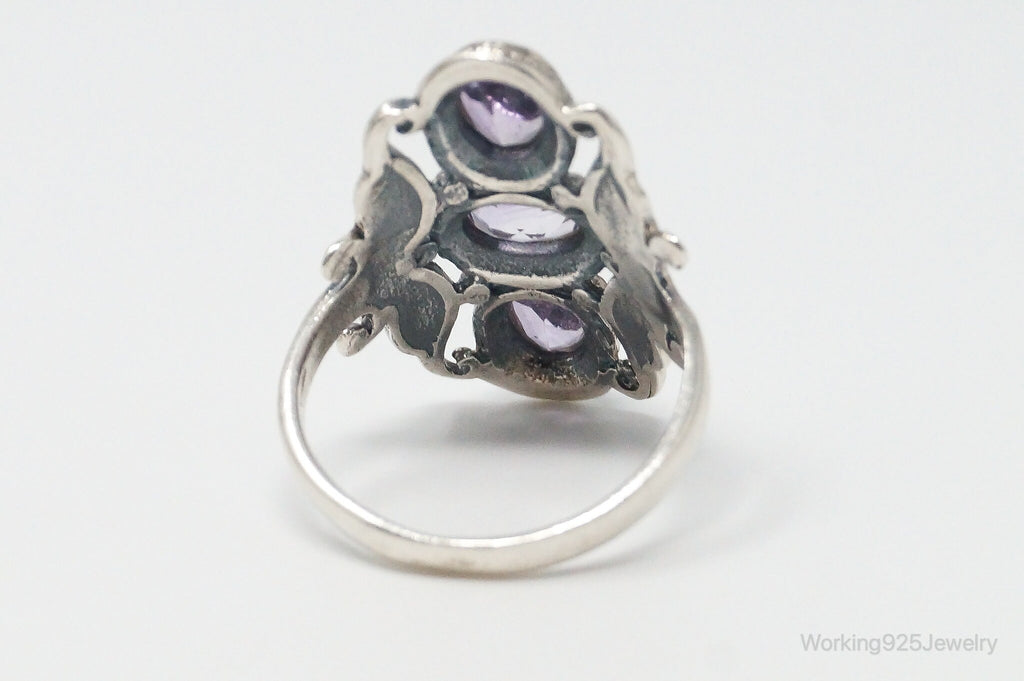 Vintage Amethyst Sterling Silver Statement Ring - Size 10