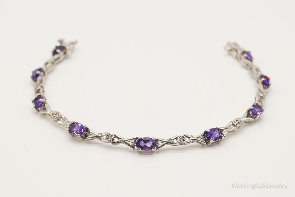Vintage Amethyst Two Diamonds Sterling Silver Bracelet