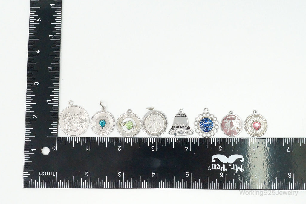 Vintage Antique Birthday Tags Sterling Silver Charms Lot
