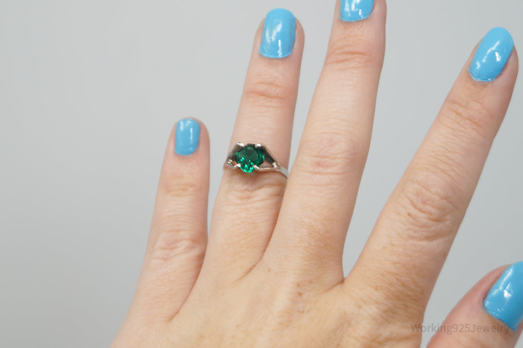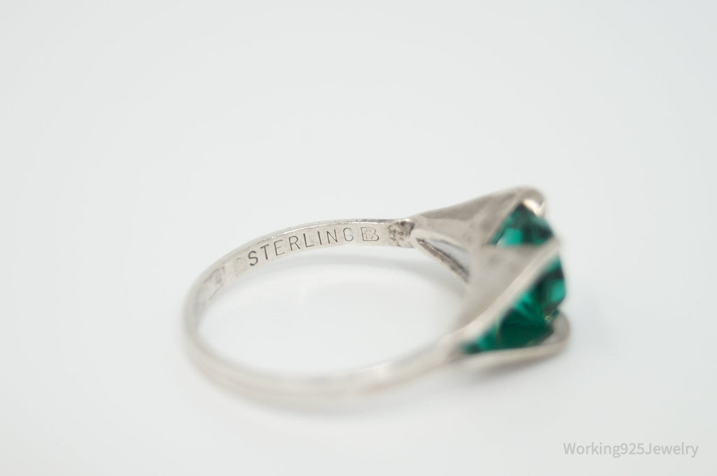 Vintage Antique Espo Style Green Art Glass Sterling Silver Ring Size 6