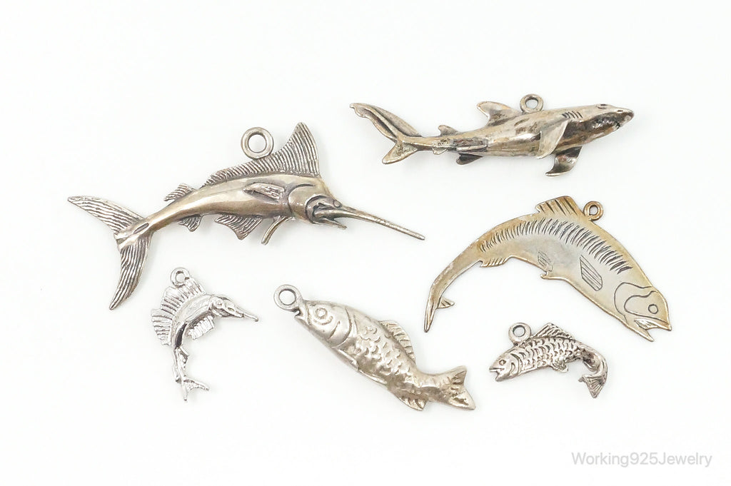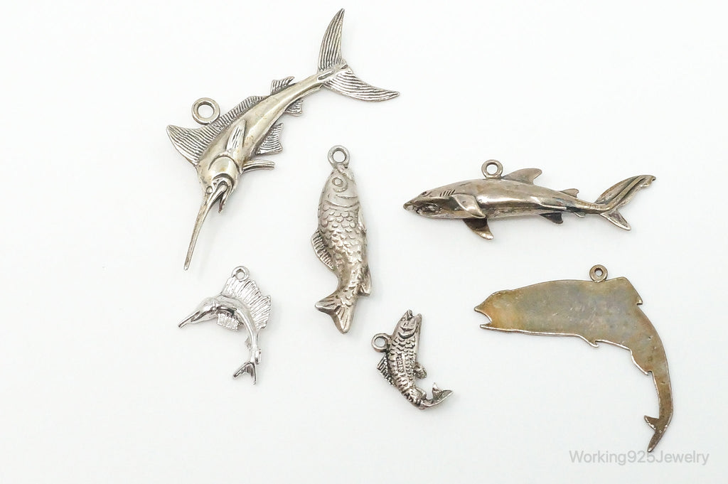 Vintage Antique Ocean Sea Life Sterling Silver Charms Lot