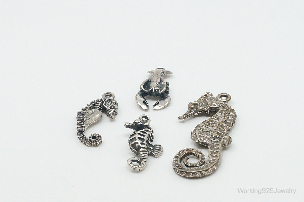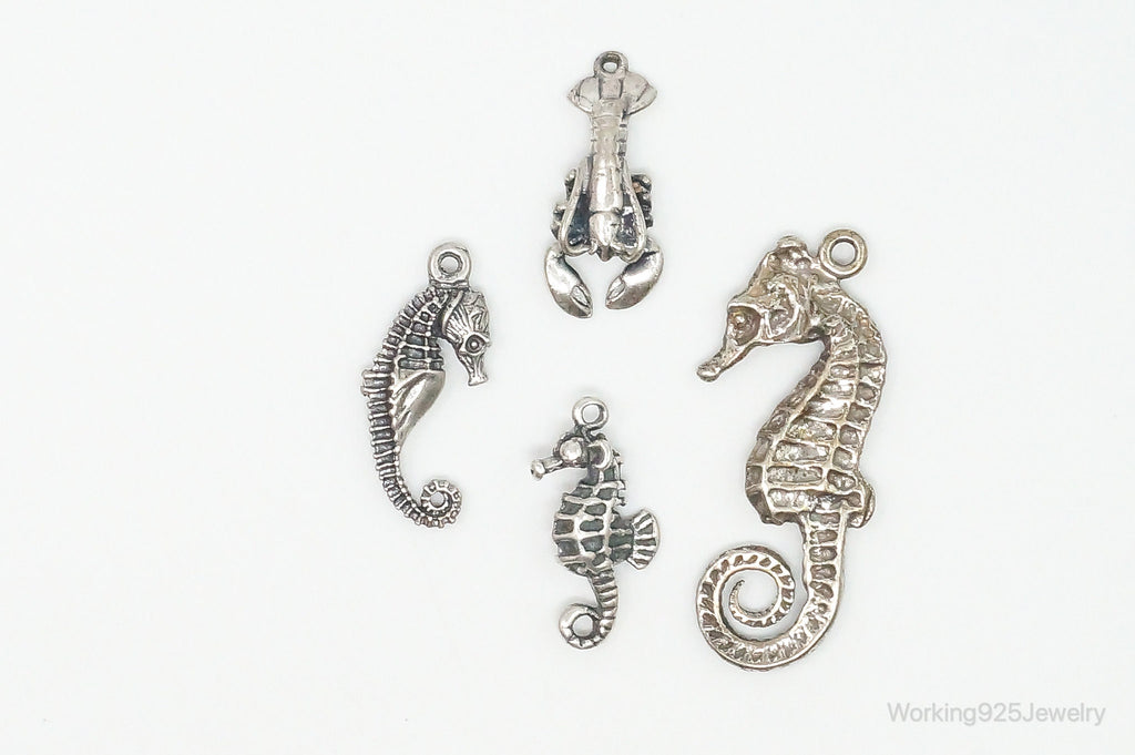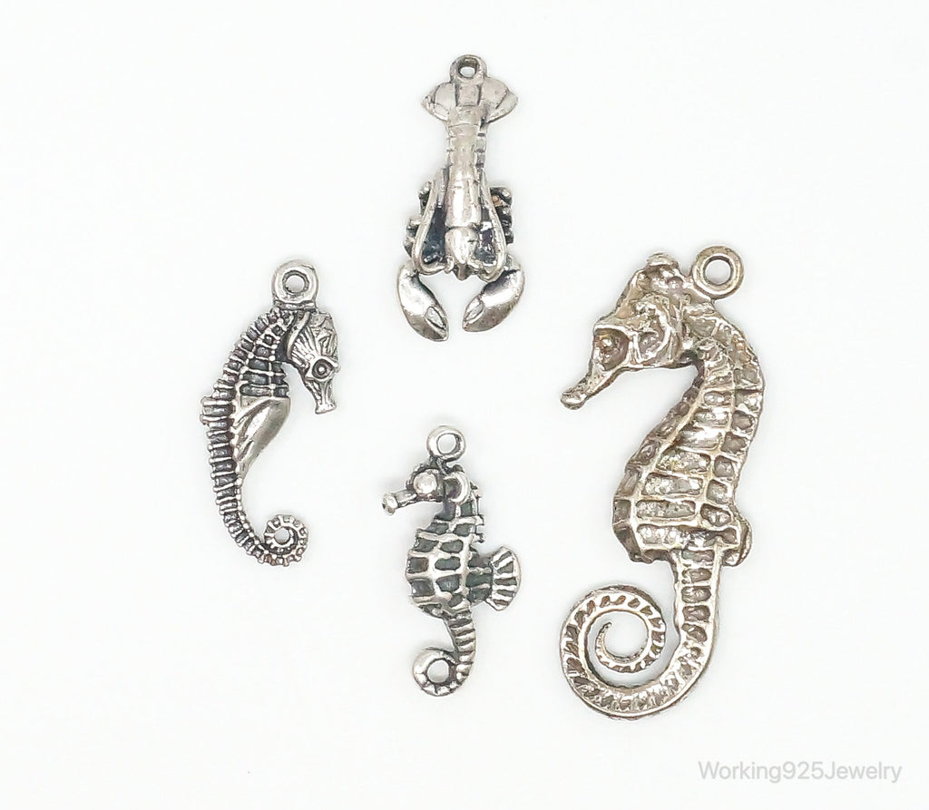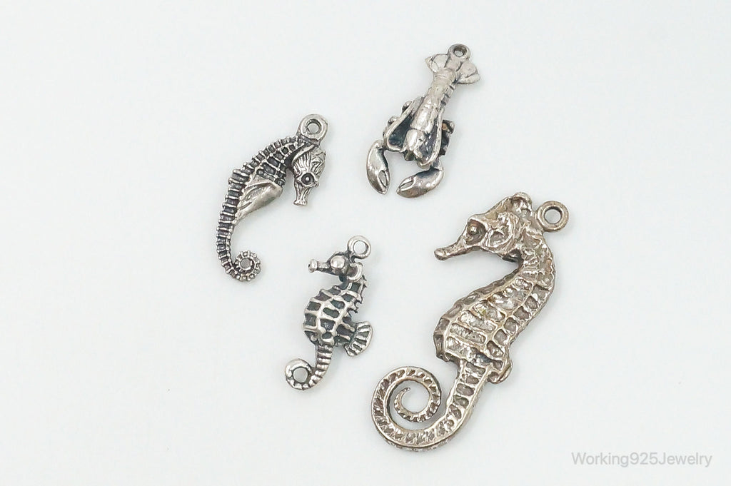 Vintage Antique Seahorses Lobster Ocean Sea Life Sterling Silver Charms Lot