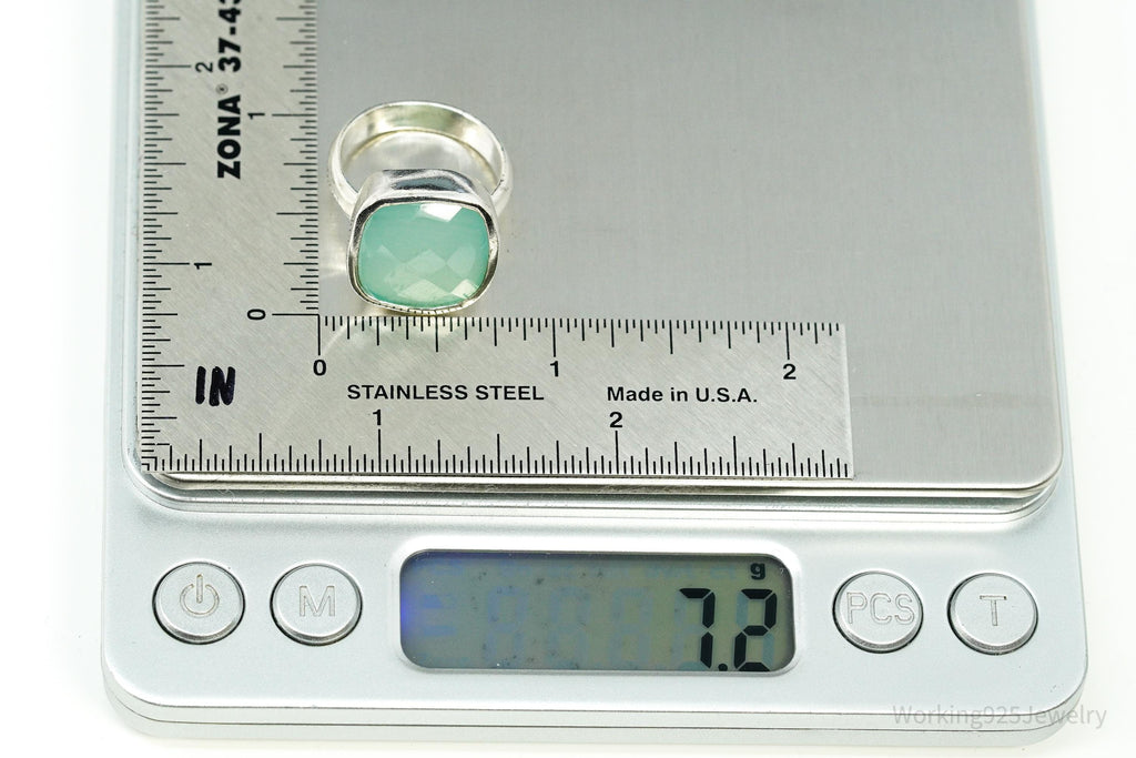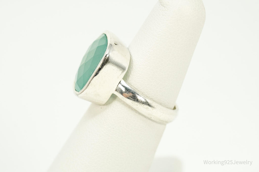 Vintage Aqua Chalcedony Silver Ring - Size 7