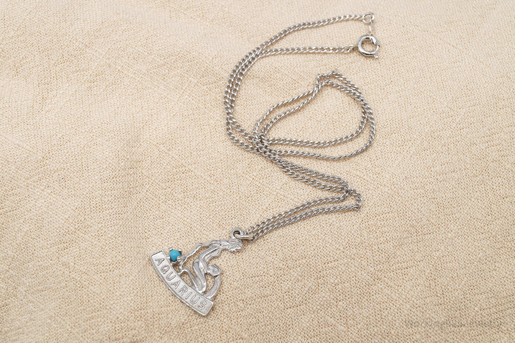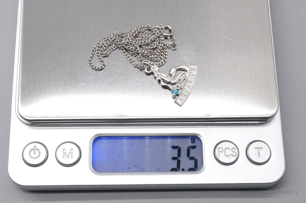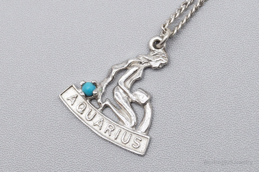 Vintage Aquarius Zodiac Sign Turquoise Sterling Silver Necklace 15"