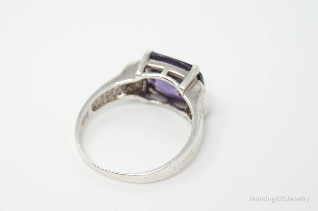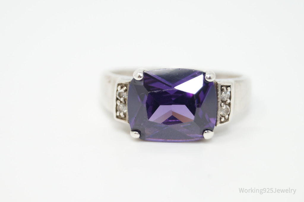 Vintage Art Deco Amethyst CZ Sterling Silver Statement Ring - Sz 10