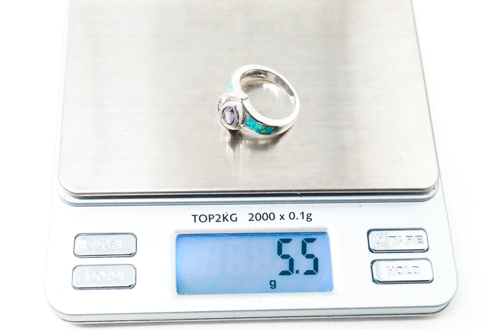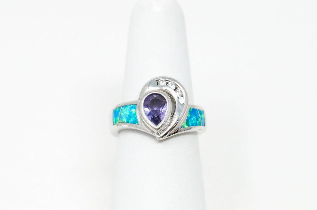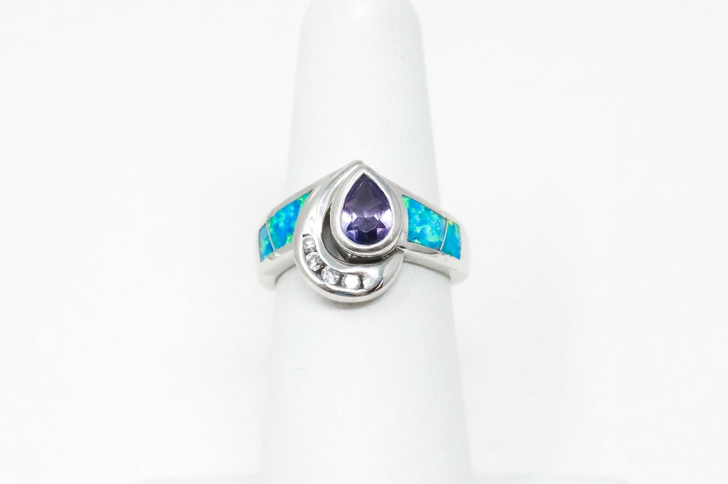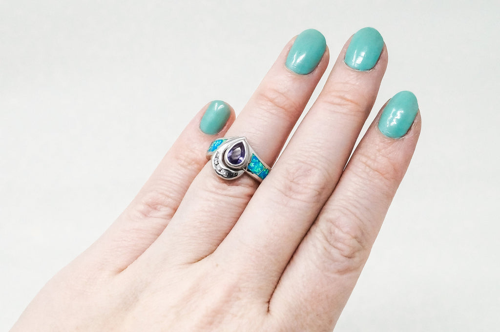 Vintage Art Deco Amethyst Fire Opal CZ Sterling Silver Ring - Sz 5.5 -784623434