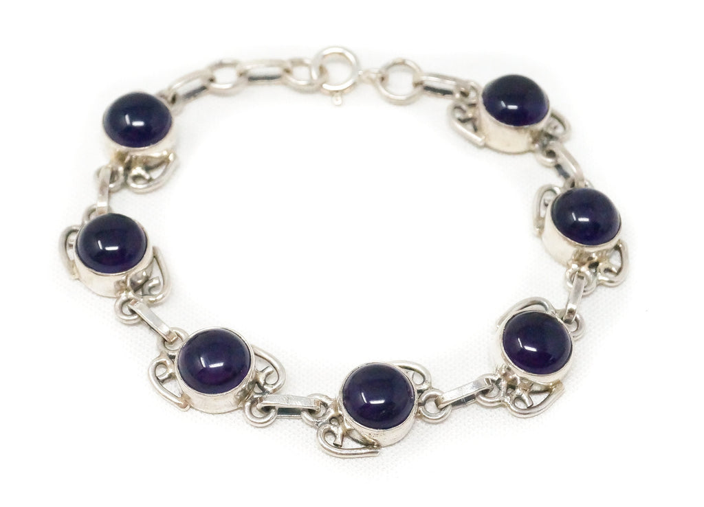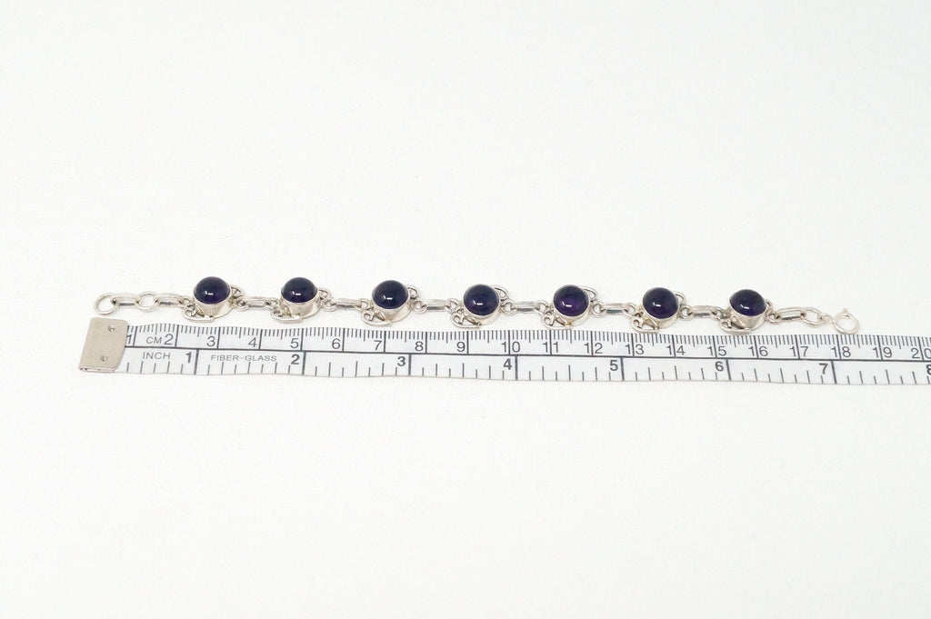 Vintage Art Deco Amethyst Modernist Sterling Silver Bracelet
