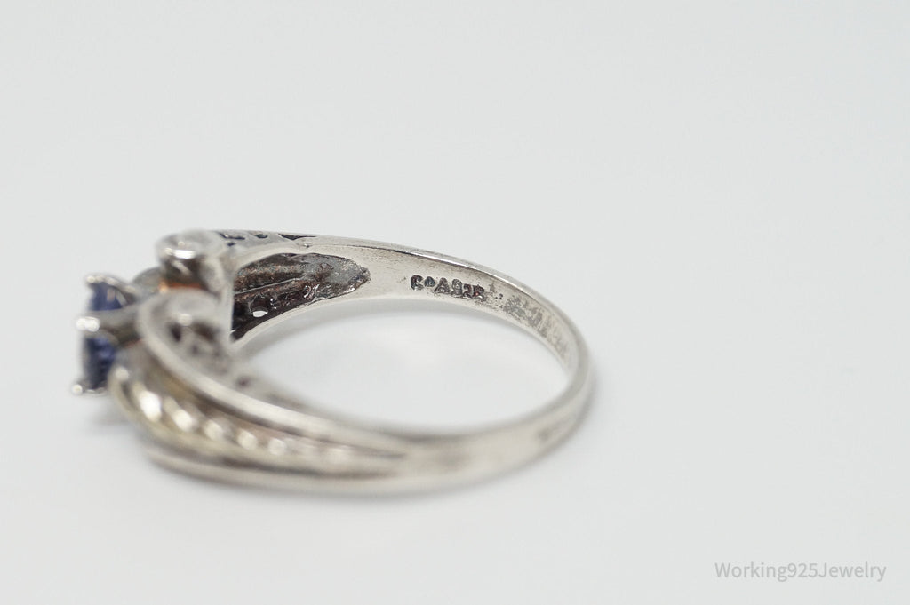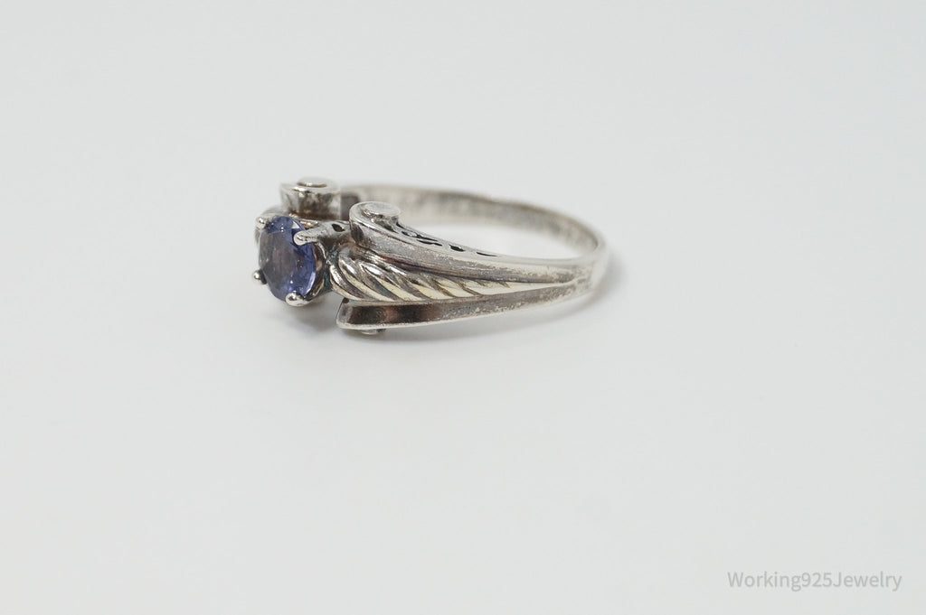 Vintage Art Deco Amethyst Sterling Silver Ring - Sz 10