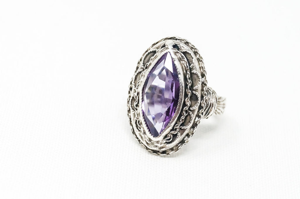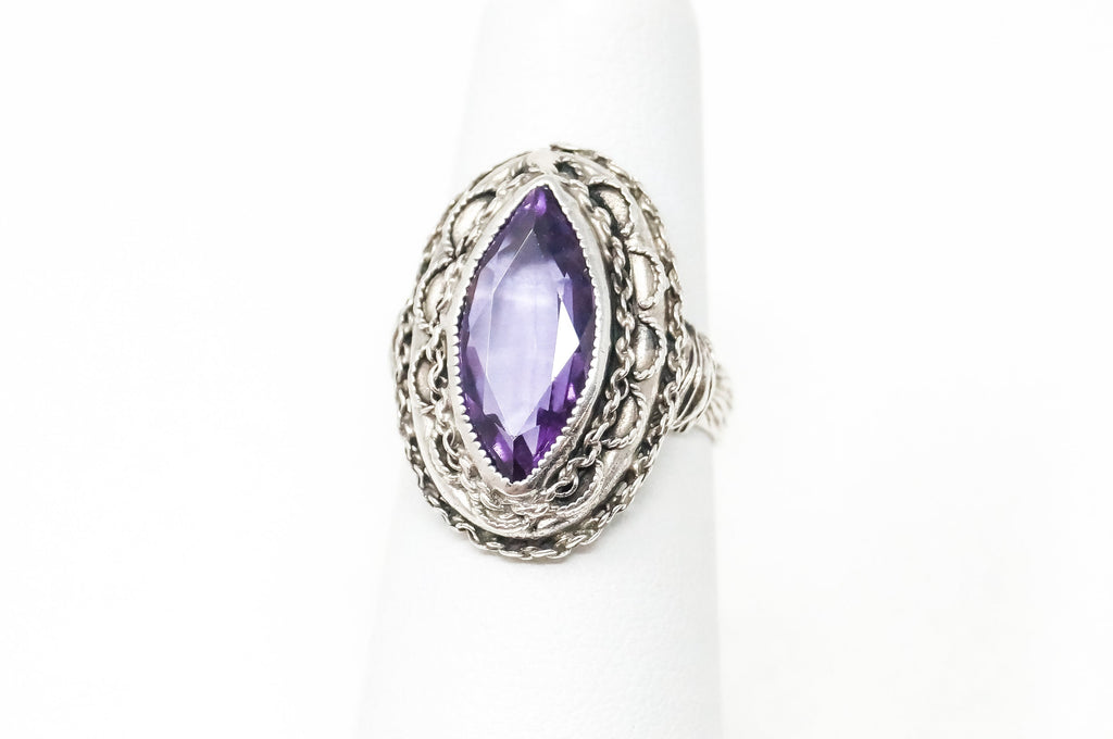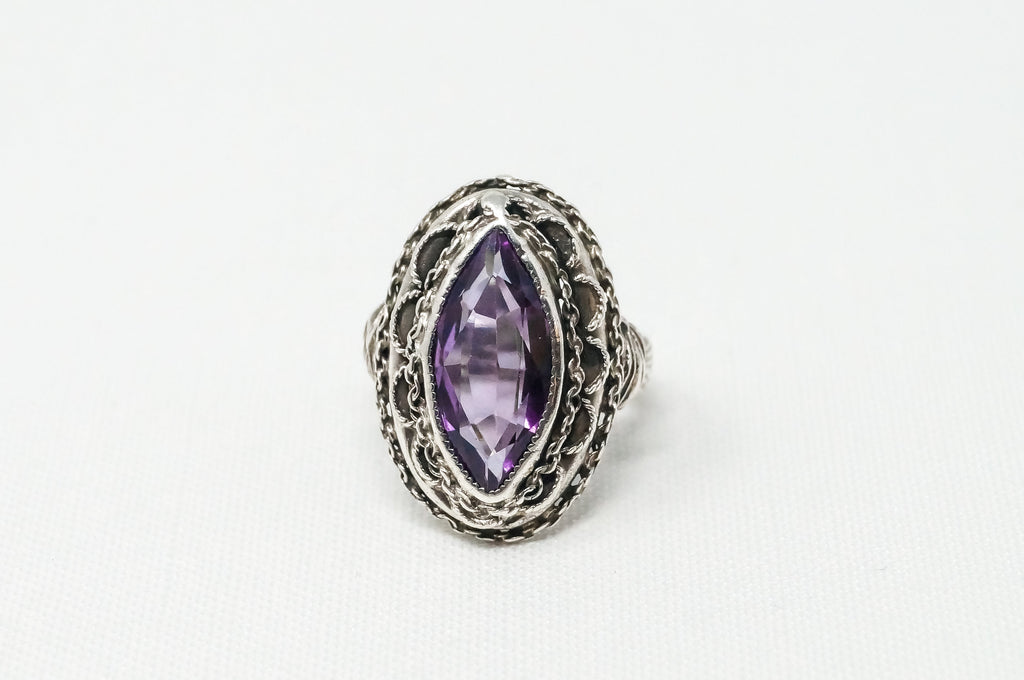 Vintage Art Deco Amethyst Sterling Silver Ring - Sz 4.5 - 785070524