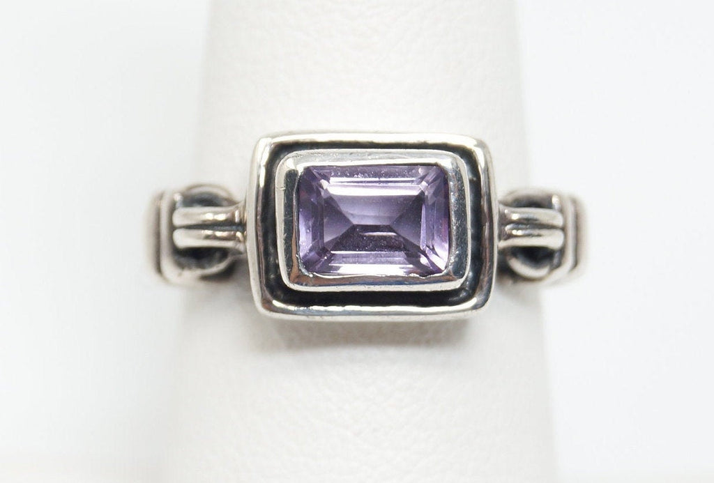 Vintage Art Deco Amethyst Sterling Silver Statement Ring Sz 7