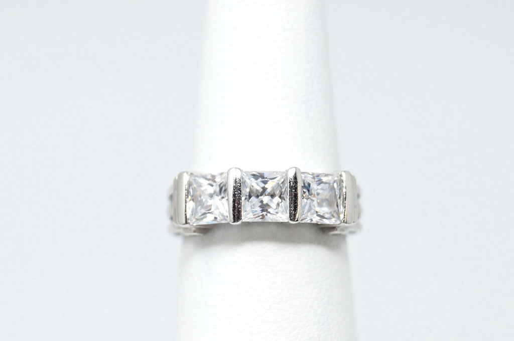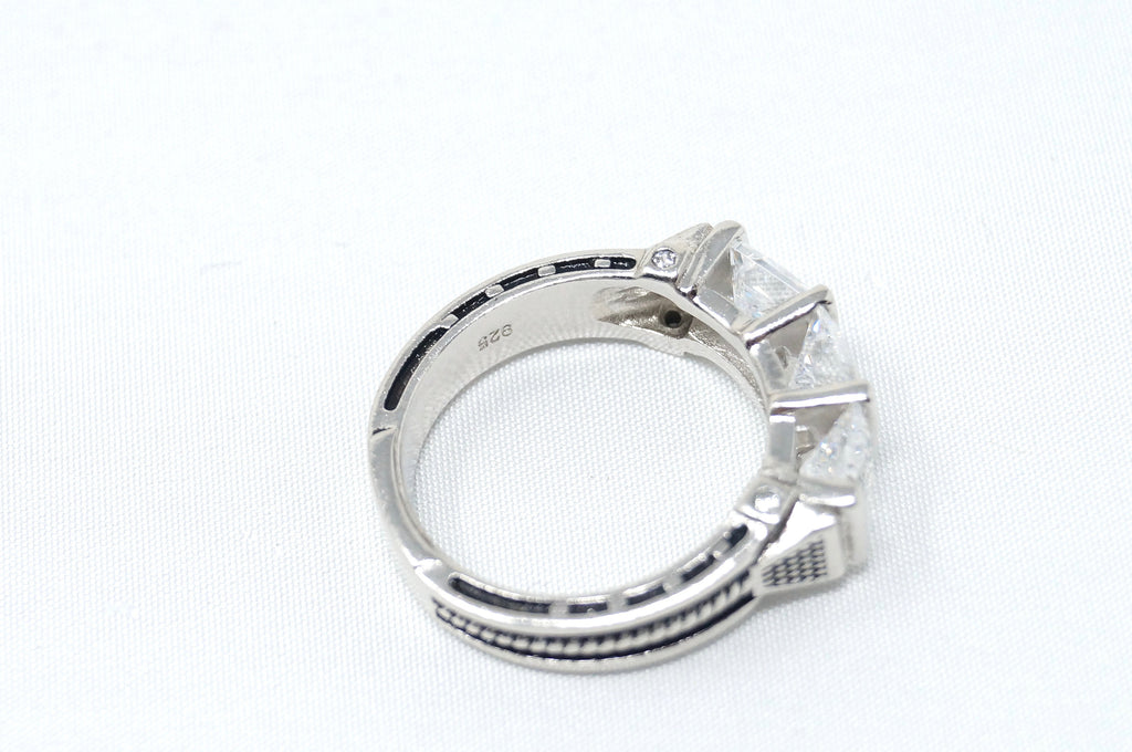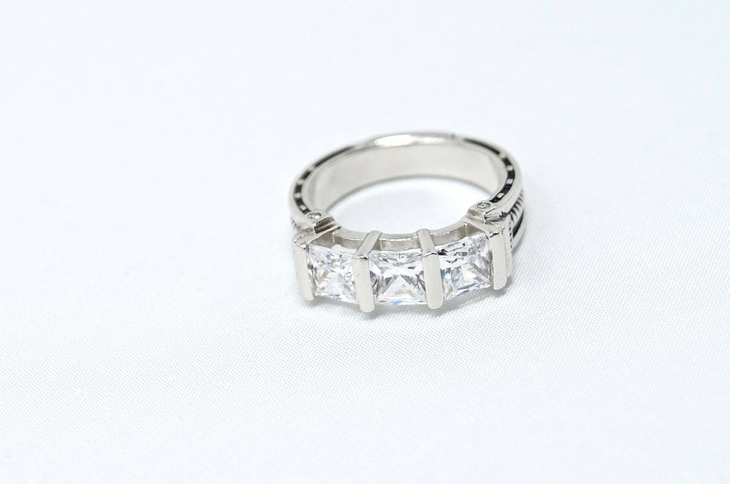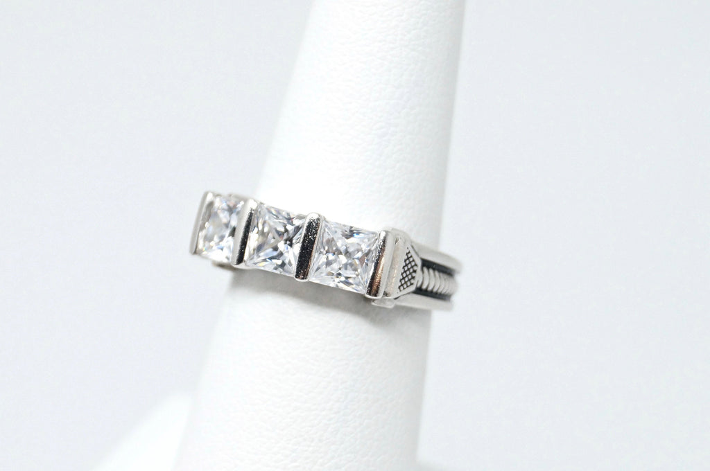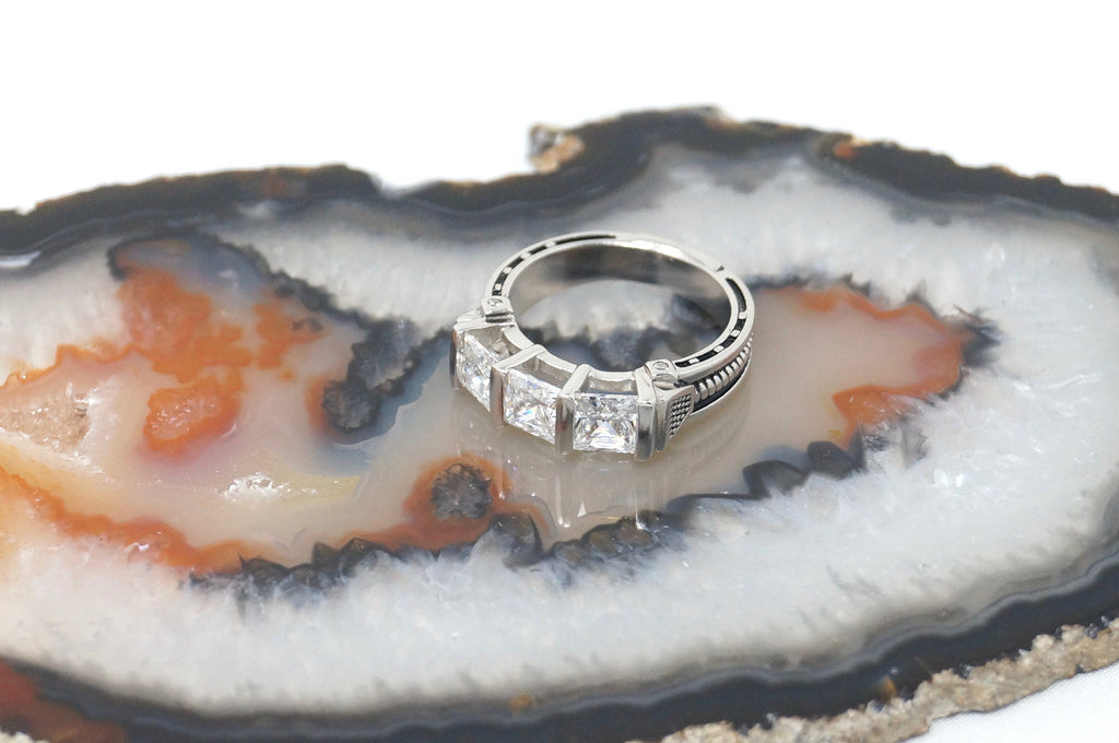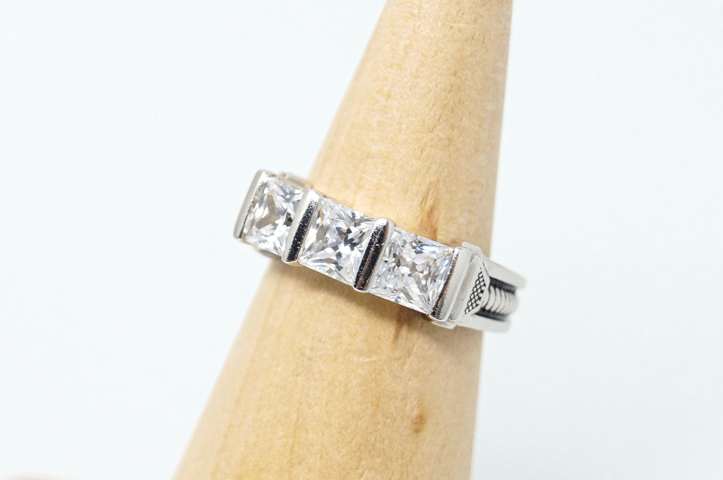 Vintage Art Deco Cable Rope Cz Black Enamel Sterling Silver Statement Ring Sz 6